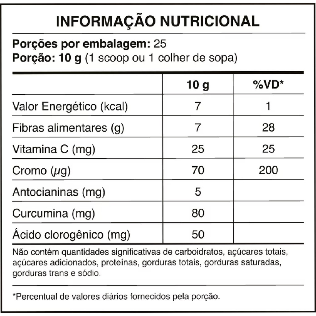 INFORMAÇÃO NUTRICIONAL Suplemento alimentar em pó Sabor frutas tropicais 250 g por embalagem 100% natural Zero açúcar Pode ser consumido quente ou frio DESCRIÇÃO Derrete é um suplemento alimentar em pó, com sabor de frutas tropicais e formulação sem adição de açúcar. Apresentado em embalagem de 250 g, pode ser consumido tanto quente quanto frio, se adaptando à rotina de cada pessoa. INGREDIENTES Polidextrose, extrato solúvel de gengibre, extrato de laranja moro, café verde moído, extratos solúveis de pimenta caiena e canela, extrato de rizoma de Curcuma longa, aromas idênticos aos naturais de abacaxi, manga, pêssego e frutas amarelas, cafeína, vitamina C (ácido ascórbico), picolinato de cromo, acidulante ácido cítrico, antiumectantes fosfato tricálcico e dióxido de silício e edulcorante glicosídeos de esteviol (stévia). NÃO CONTÉM GLÚTEN. MODO DE USO Adicione 1 scoop (10 g) ou 1 colher de sopa do produto em um copo com 200 ml de água e mexa bem. Consumir 1 vez ao dia.