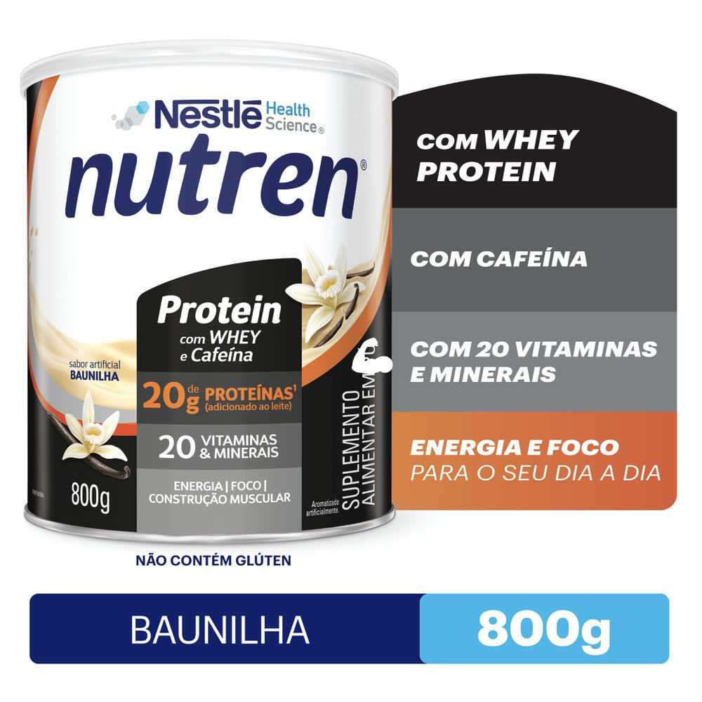 Nutren Protein Baunilha 800g Nutren Protein é um lançamento inovador e descomplicado para quem precisa de foco e energia no seu dia a dia. É um suplemento alimentar com uma combinação única de Whey Pr