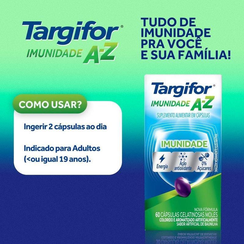 Pharmaton Imunidade e Energia agora é Targifor Imunidade A-Z, uma nova marca, com nova embalagem e os mesmos benefícios. Ele é um suplemento alimentar multivitamínico, ou seja, que apresenta em sua composição diversas vitaminas e minerais, além de ômega 3.A fórmula de Tagifor Imunidade A-Z contribui com a imunidade e disposição ao longo do dia, isso porque os nutrientes auxiliam no fortalecimento da imunidade e no metabolismo energético.Além disso, a composição de Targifor Imunidade A-Z conta com outros minerais e vitaminas com ação antioxidante, e tem 0% de açúcares. Quando associados a uma alimentação equilibrada e hábitos saudáveis, eles ajudam a nutrir o organismo.Targifor Imunidade A-Z pode ser encontrado nas versões com 30 e 60 cápsulas gelatinosas. É recomendada a ingestão de 2 cápsulas ao dia, preferencialmente pela manhã. Indicado para adultos com idade igual ou acima de 19 anos.TARGIFOR® IMUNIDADE A-Z NÃO CONTÉM GLÚTEN.MAT-BR-2307017 dez 23