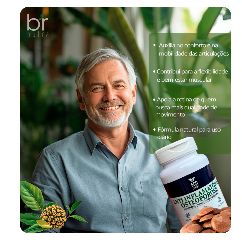 🌿 Conforto Articular e Mobilidade com o Poder da Natureza Se dores articulares e desconfortos fazem parte da sua rotina, é hora de cuidar do seu corpo de forma natural. A combinação poderosa dos ingredientes oferece suporte anti-inflamatório, ajuda na saúde das articulações e contribui para mais mobilidade e qualidade de vida, auxiliar no alívio de dores, proteger as articulações e apoiar o bem-estar do corpo no dia a dia. Um cuidado diário para quem busca mais conforto, movimento e saúde de forma natural. 🌱 Fórmula natural: - Tradicionalmente utilizada para apoiar o conforto das articulações e a mobilidade. - Reconhecida pelo suporte ao bem-estar articular e muscular. - Fonte natural de compostos que auxiliam no equilíbrio do organismo e na resposta inflamatória natural. ✨ Principais benefícios: ✅ Auxilia no conforto e na mobilidade das articulações ✅ Contribui para a flexibilidade e bem-estar muscular ✅ Apoia a rotina de quem busca mais qualidade de movimento ✅ Fórmula natural para uso diário 💚 Cuidado diário para suas articulações, com ativos naturais que acompanham o seu ritmo. Recomendação de Uso: ✅ Melhores horários de consumo: Frasco com 90 cápsulas consumir 2 (Duas) cápsulas ao dia. 👉 Opção recomendada (mais equilibrada): 1 cápsula após o almoço 1 cápsula após o jantar ✅ Melhores horários de consumo: Frasco com 60 cápsulas consumir 3 (Três) cápsulas ao dia. 👉 Opção recomendada (mais equilibrada): 1 cápsula pela manhã, após o café da manhã 1 cápsula após o almoço 1 cápsula após o jantar 💡 Dicas importantes: Consumir sempre junto ou logo após as refeições Ingerir com água (preferencialmente com 200ml de água) Evitar consumir em jeju Uso diário e contínuo tende a trazer melhores resultados NÃO CONTÉM GLUTEN.
