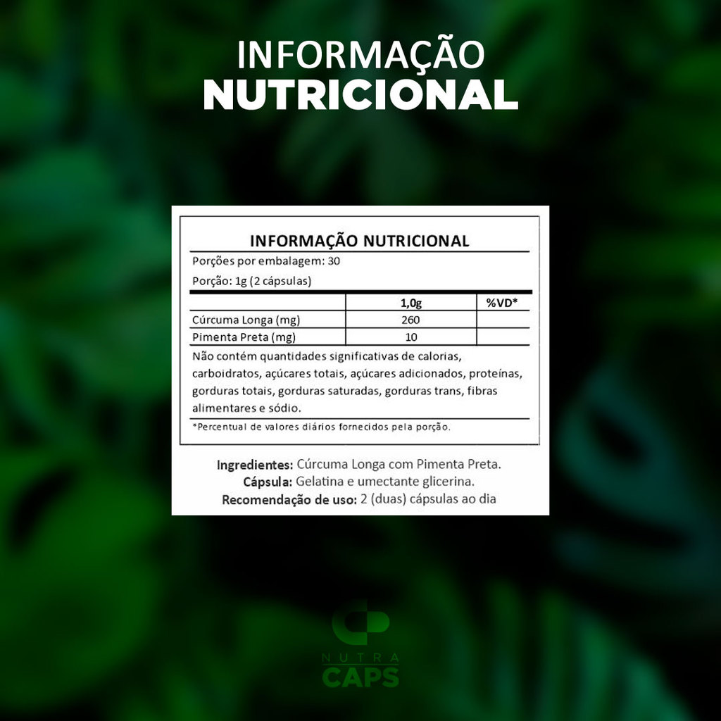 Suplemento Cúrcuma com Pімепtа Pгеtа - 60 Cáps 500mg | A Pimenta faz diferença, a escolha certa é a Preta