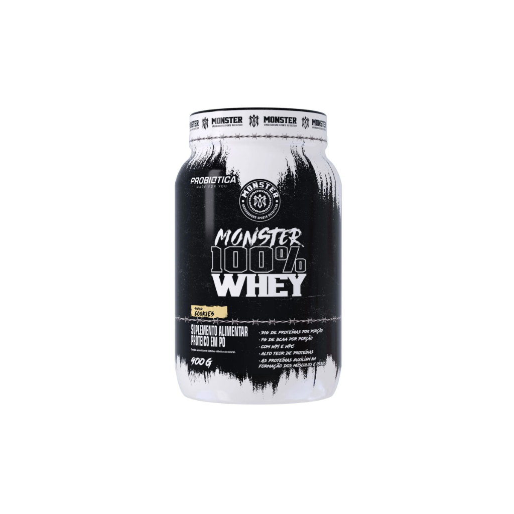 Sobre o Produto A essência do bodybuilding underground traduzida em um produto único! Essa é a MONSTER 100% WHEY ideal para quem busca ir além dos resultados. Inspirada nos melhores atletas e com tecnologia de ponta, a MONSTER preparou esse suplemento para suprir o aporte proteico de quem está sempre preparado para os desafios mais extremos. Um suplemento que está pronto para contribuir na sua evolução física e em treinos, com alta qualidade, além de ser prático, saboroso e de fácil digestão. Recomendação de uso Utilize de uma a duas porções ao dia, ou conforme orientação profissional. Destaques LACTOSE: Contém. Benefícios 31g de proteína por porção 7g de BCAA por porção Com WPI e WPC Alto teor de proteínas As proteínas auxiliam na formação dos músculos e ossos Modo de Preparo Para o preparo de uma porção, misture 40g (2 dosadores*) do produto em 200mL (1 copo) de água ou outra bebida de sua preferência (leite integral ou desnatado, por exemplo) com o auxílio de um liquidificador ou coqueteleira. *A quantidade da porção no dosador pode variar em função da densidade e outras características do produto. Advertências ESTE PRODUTO NÃO É UM MEDICAMENTO. NÃO EXCEDER A RECOMENDAÇÃO DIÁRIA DE CONSUMO INDICADA NA EMBALAGEM. MANTENHA FORA DO ALCANCE DAS CRIANÇAS. Alergênicos CHOCOLATE: CONTÉM DERIVADOS DE LEITE E SOJA. PODE CONTER OVO. COOKIES: CONTÉM DERIVADOS DE LEITE, SOJA E TRIGO. PODE CONTER OVO, AMENDOIM, AVEIA, AMÊNDOA, AVELÃ, CASTANHA-DE-CAJU, CASTANHA-DO-PARÁ, CENTEIO, CEVADA, MACADÂMIA E NOZES. MORANGO: CONTÉM DERIVADOS DE LEITE E SOJA. PODE CONTER DERIVADOS DE OVO