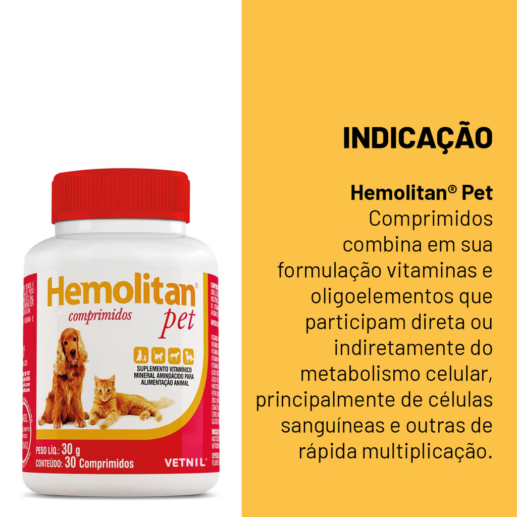 Suplemento Hemolitan Pet Para Cães/Gatos 30 Comprimidos 30g