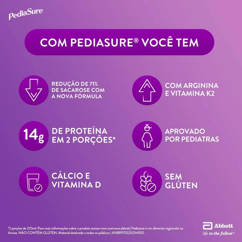 | Suplemento Infantil Em Pó Pediasure Morango Com 400g este produto | R$ 180,79 | — | 5.0/5 | — |