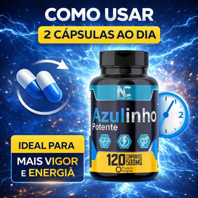 Se você quer mais disposição, energia e vitalidade para encarar a rotina com confiança, o Azulinho (Natural Caps) é a escolha certa. Produto pensado para o público masculino que busca vigor diário, melhora na performance do dia a dia e bem-estar. Principais benefícios ; Mais energia e disposição para o dia a dia Sensação de vigor e prontidão Apoio à libido e confiança Ideal para quem vive na correria e quer render mais Como usar: 2 comprimidos ao dia (conforme rótulo). Conteúdo: 120 comprimidos | 500mg cada Produto original | Envio bem embalado | Postagem rápida Para quem é indicado? Para homens que querem se sentir mais ativos, confiantes e com mais disposição — e também para quem quer dar aquele “up” na rotina. Avisos importantes: Suplemento alimentar. Não é medicamento. Use conforme orientação do rótulo. Em caso de dúvidas, procure um profissional.