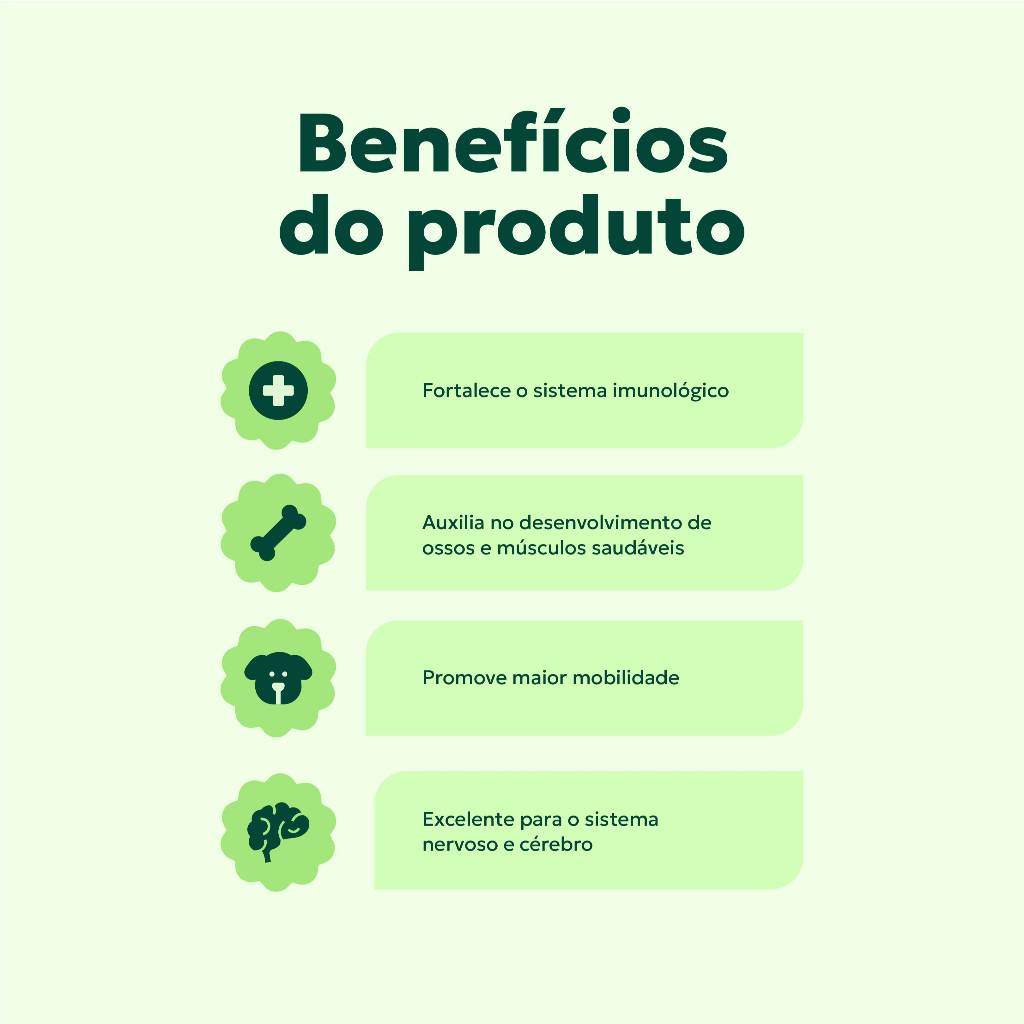 Nutroplus Primus Crescimento Suplemento para quem quer oferecer uma alimentação caseira com restrição de levedura e proteína de forma segura, nutritiva e equilibrada para cães. Oferecer dieta caseira é um ato de amor, mas quando há necessidade de restrição de levedura e proteína os cuidados devem ser redobrados para garantir que nenhum nutriente essencial falte no prato do seu pet. Pensando nisso, a Nutroplus desenvolveu o Primus Crescimento, um suplemento vitamínico e mineral, formulado com tecnologia avançada e ingredientes de alta biodisponibilidade. Por que o Nutroplus Primus Crescimento é indispensável na dieta caseira? Fórmula moderna e completa (sem levedura e proteína) Desenvolvido em conformidade com o Nutrient Requirements of Dogs and Cats - NRC (2006) para suprir as necessidades de nutrientes essenciais de cães. Nutrientes com alta absorção Contém minerais e vitaminas que garantem melhor aproveitamento pelo organismo, com resultados visíveis. Benefícios que você nota no dia a dia Desenvolvimento cerebral e cognitivo Ossos fortes e crescimento saudável Imunidade reforçada Melhor digestão e absorção de nutrientes Mais disposição e vitalidade Reduz os riscos de deficiências nutricionais em dietas caseiras livres de leveduras e proteínas Para quem é indicado? Para cães filhotes, de todas as raças e portes, que consomem dietas caseiras sem leveduras e proteínas. Composição Ácido Fólico, Biotina, Calcário Calcítico, Colina, Dióxido de silício, Extrato de Alecrim, Extrato de Chá Verde, Fosfato bicálcico, Iodato de Cálcio, Niacina, Oxido de Zinco, Pantotenato de cálcio, Selenito de Sódio, Sulfato de Manganês, Sulfato de Ferro, Sulfato de cobre, Vitamina A, Vitamina B1, Vitamina B2, Vitamina B6, Vitamina B12, Vitamina C, Vitamina D3, Vitamina E, Vitamina K3, Zeolita. Como usar o suplemento Adicione 12g do produto para cada 1.000 kcal de dieta (equivale a aproximadamente 1kg de alimento). Acrescente o conteúdo na alimentação e misture bem, de preferência na hora de servir. Introduza o produto de forma gradativa: adicione 25% da dose indicada a cada 4 dias até alcançar a dose total. Contém colher dosadora de 2,5g. Segurança e qualidade A linha Nutroplus Primus Crescimento foi desenvolvida com: Microminerais e vitaminas Matérias-primas de alta pureza Tecnologia para assegurar máxima absorção Tudo para garantir nutrição e proteção para o seu pet.