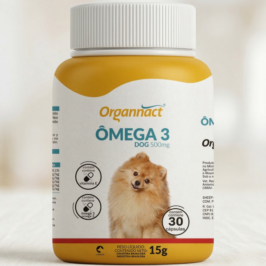 Suplemento Ômega 3 Dog Organnact 30 comprimidos 500mg - Indicado para cães; - Cápsulas gelatinosas que facilita a administração; - Contém 30 Cápsulas 500mg; - Ajuda na função cognitiva; - Pelo mais brilhante e uma pele mais saudável; - Para cães de todas as idades e portes. A escolha perfeita para quem busca oferecer o melhor em cuidado e saúde para o seu pet, formulado especialmente para cães, este suplemento é rico em Ômega 3, um ácido graxo essencial que desempenha um papel crucial na manutenção de uma pele saudável e pelo brilhante, além de contribuir para a saúde cardiovascular e suporte ao desenvolvimento cognitivo. Cada comprimido é cuidadosamente produzido para garantir a dose ideal de Ômega 3, proporcionando assim, uma maneira fácil e conveniente de complementar a dieta do seu cão com nutrientes essenciais que ele pode não estar obtendo apenas através da alimentação, ideal para cães de todas as idades e tamanhos, o Suplemento Ômega 3 Dog Organnact oferece uma solução prática para promover uma vida longa e saudável para o seu pet. Este suplemento é fácil de administrar e pode ser oferecido diretamente ou misturado à comida do seu cão, tornando-se um hábito simples no dia a dia que faz uma grande diferença na qualidade de vida do seu animal de estimação. Modo de usar Cápsulas 500mg: 1 a 2 cápsulas por dia para cada 10 kg de peso do cão. Composição Óleo de peixe refinado, DL-Alfa-Tocoferol, BHT (Butilhidroxitolueno).
