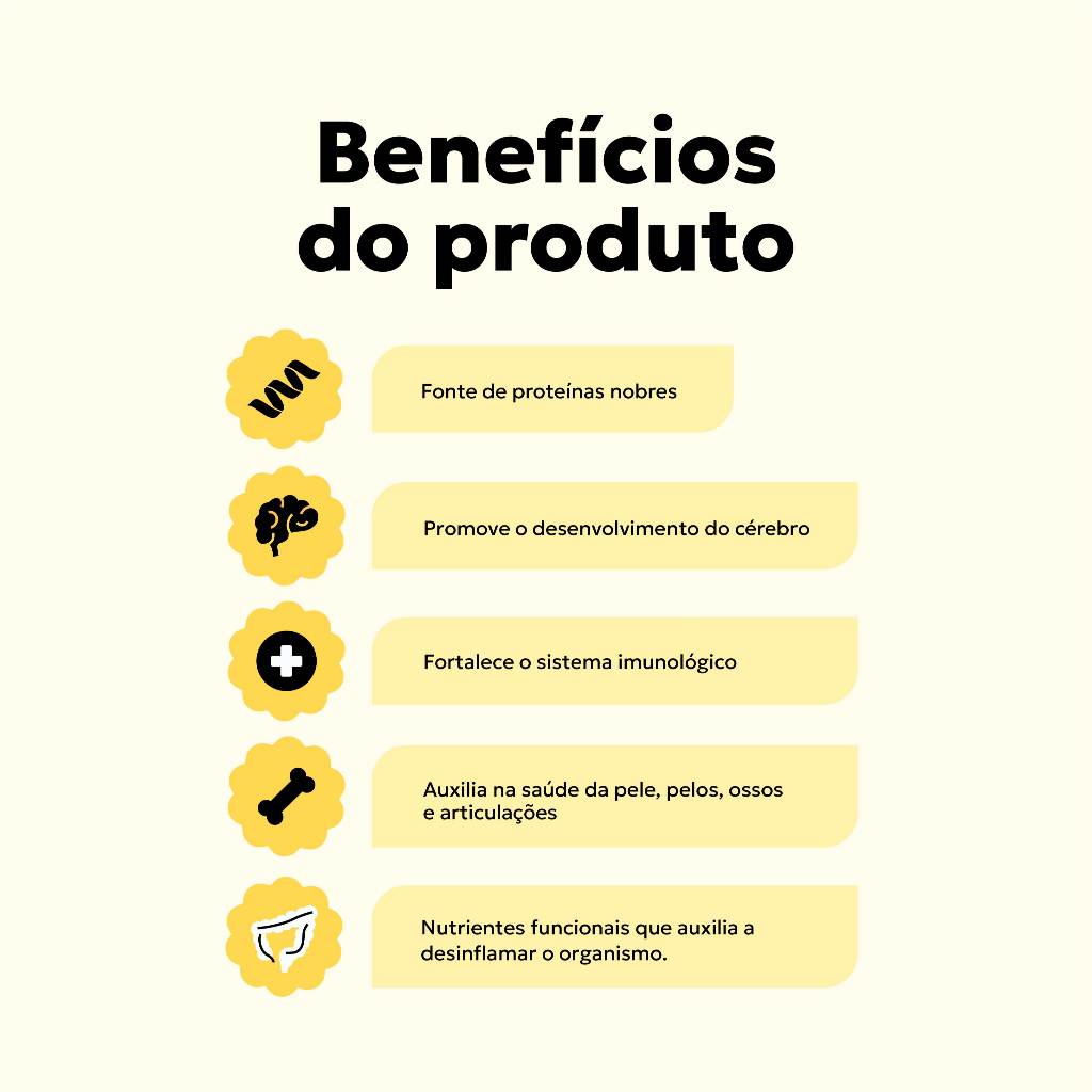 Nutroplus Reforce Crescimento e Alta Demanda Suplemento para quem quer oferecer uma alimentação à base de ração de forma segura, nutritiva e equilibrada para cães. Oferecer uma boa alimentação é um ato de amor, mas também exige cuidado para que nenhum nutriente essencial falte no prato do seu pet. Pensando nisso, a Nutroplus desenvolveu o Reforce Crescimento e Alta demanda, um suplemento vitamínico e mineral, formulado com tecnologia avançada e ingredientes de alta biodisponibilidade. Por que o Nutroplus Reforce é indispensável na ração? Fórmula moderna e completa Desenvolvido para atender exigências nutricionais de cães em crescimento, gestação, lactação ou atividades esportivas e de trabalho. Nutrientes com alta absorção Contém minerais quelatados e enzimas como protease, que potencializam a digestão e aproveitamento dos nutrientes. Desenvolvimento cerebral e cognitivo Inclui biomassa de microalgas com DHA, essencial para funções neurológicas. Mais saúde intestinal e imunidade reforçada A combinação de prebióticos (GOS, FOS, MOS) e betaglucanos melhora a microbiota e fortalece a imunidade. Ação antioxidante e anti-inflamatória Com cúrcuma, chá verde e alecrim, que contribuem para saúde celular e recuperação muscular. Benefícios que você nota no dia a dia Mais disposição e desempenho físico Ossos e articulações fortalecidos Desenvolvimento cerebral e cognitivo Imunidade reforçada Melhor digestão e aproveitamento da ração Reduz riscos de deficiências nutricionais Para quem é indicado? Para cães filhotes, gestantes, lactantes ou atletas, de todas as raças e portes, que consomem dietas à base de ração. Composição Betaglucana, Biomassa de microalga desidratada Schizochytrium sp, Biomassa de microalga desidratada Spirulina Platensis (0,5%), Colágeno hidrolisado, Cloreto de sódio, Dióxido de silício, Extrato de chlorella (chlorela ssp) (0,5%), Extrato de alecrim, Extrato de chá verde, Fosfatidilcolina, Frutooligossacarídeo (2,4%), Galactooligossarídeo (1,4%), lodato de potássio, Hidrolisado de figado de aves, Levedura de cana-de-açúcar desidratada, Mananoligossacarídeo (1,2%), Organoselênio (0,0018%), Organozinco (0,825%), Organoferro (0,52%), Organocobre (0,055%), Organomanganês (0,03%), Organocromo (0,002%), Protease, Vitamina E, VItamina C. Como usar o suplemento Adicione 15g do produto para cada 4.000 kcal de dieta (equivale a aproximadamente 1kg de ração), ou conforme a tabela de peso. Acrescente o conteúdo na alimentação e misture bem, de preferência na hora de servir. Introduza o produto de forma gradativa: adicione 25% da dose indicada a cada 4 dias até alcançar a dose total. Dica: Para animais com apetite seletivo, o suplemento pode ser misturado a um veículo oleoso, como manteiga levemente aquecida ou óleo de coco, na proporção 1:1 (óleo:suplemento). Em seguida, adicione à ração. Contém colher dosadora de 2,5g. Segurança e qualidade A linha Nutroplus Reforce Crescimento e Alta Demanda foi desenvolvida com: Prebióticos GOS, FOS, MOS Betaglucanos Microminerais quelatados Enzimas digestivas Ingredientes funcionais e antioxidantes Tecnologia para máxima absorção Tudo para garantir nutrição e proteção para o seu pet.