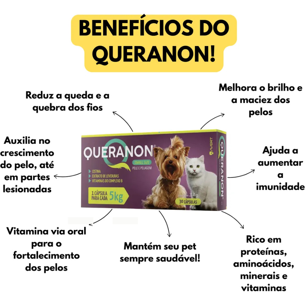 Suplemento Queranon Small Size Para Cães e Gatos 5kg 30 Cápsulas Avert - Para Pele e Pelagem