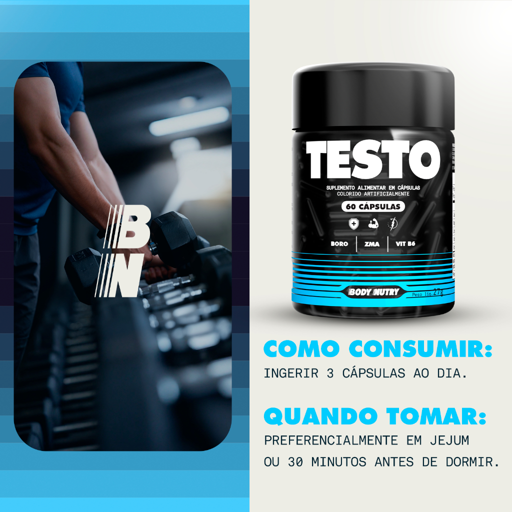 TESTO Se você está em busca de uma maneira eficiente e segura de maximizar os resultados de seus treinos, o Testo GH da Body Nutry pode ser exatamente o que você precisa. Este suplemento pré-hormonal em cápsulas foi especialmente formulado para ajudar a aumentar a produção de testosterona e GH, dois hormônios que desempenham um papel crucial no crescimento muscular e na recuperação após o treino. BENEFÍCIOS: - imunidade. - Auxilia a Redução da gordura. - Matérias-primas importadas de alto padrão de qualidade. - Controla a pressão arterial. Com uma fórmula cuidadosamente desenvolvida, o Testo da Body Nutry contém ingredientes potentes, como o ZMA (uma combinação de zinco, magnésio e vitamina B6), que é conhecido por ajudar a aumentar os níveis de testosterona de forma natural. Além disso, ele também contém ingredientes como a arginina e a ornitina, que ajudam a melhorar a circulação sanguínea e a oxigenação muscular, proporcionando um maior aporte de nutrientes e energia para o corpo. Tomar o Testo da Body Nutry pode ajudar a melhorar a sua performance durante o treino, aumentar a sua resistência e força, e acelerar a recuperação muscular. Ele é indicado tanto para atletas profissionais quanto para amadores que desejam obter melhores resultados em seus treinos e alcançar seus objetivos mais rapidamente. Não perca mais tempo e experimente agora mesmo o Testo da Body Nutry. Com 60 ou 120 cápsulas por embalagem, você terá o suficiente para um tratamento completo e poderá ver os resultados em pouco tempo. Ele é o complemento perfeito para o seu estilo de vida saudável e ativo!