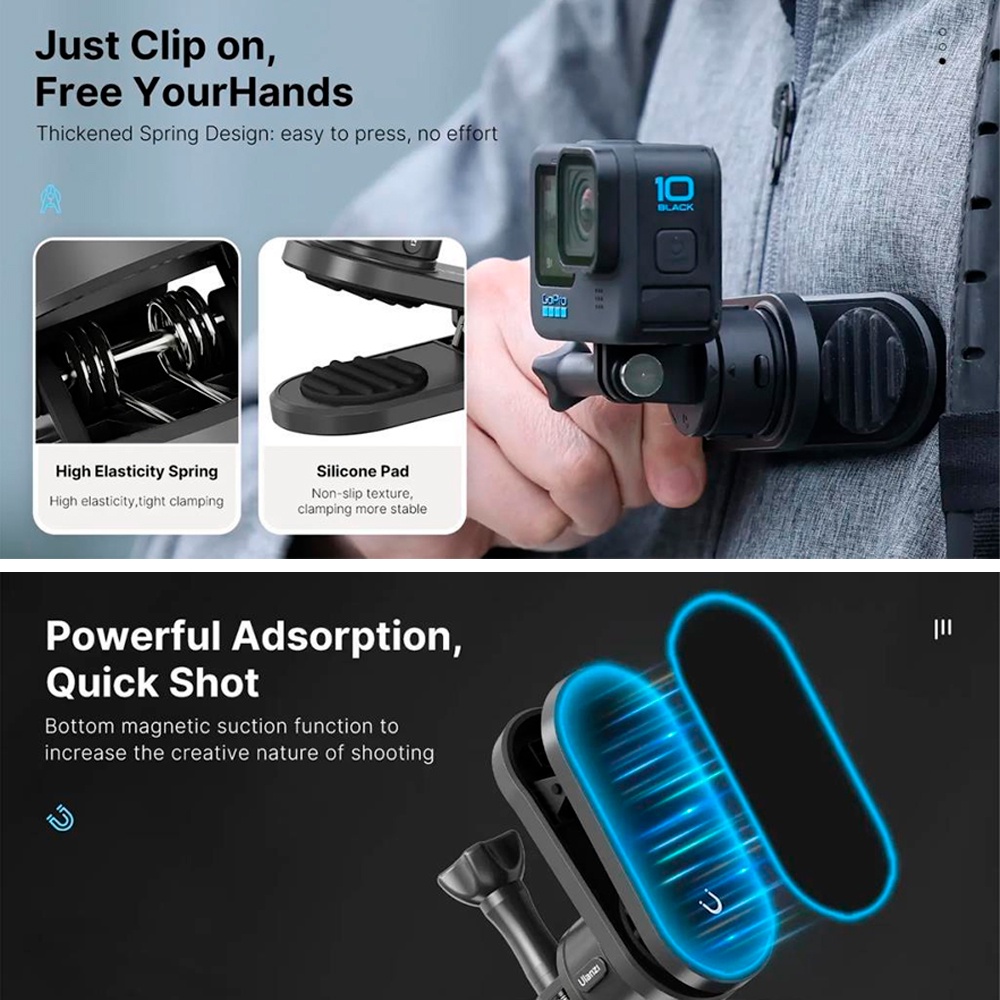 Suporte Alça Mochila Ulanzi Magnético Câmera Ação Preta