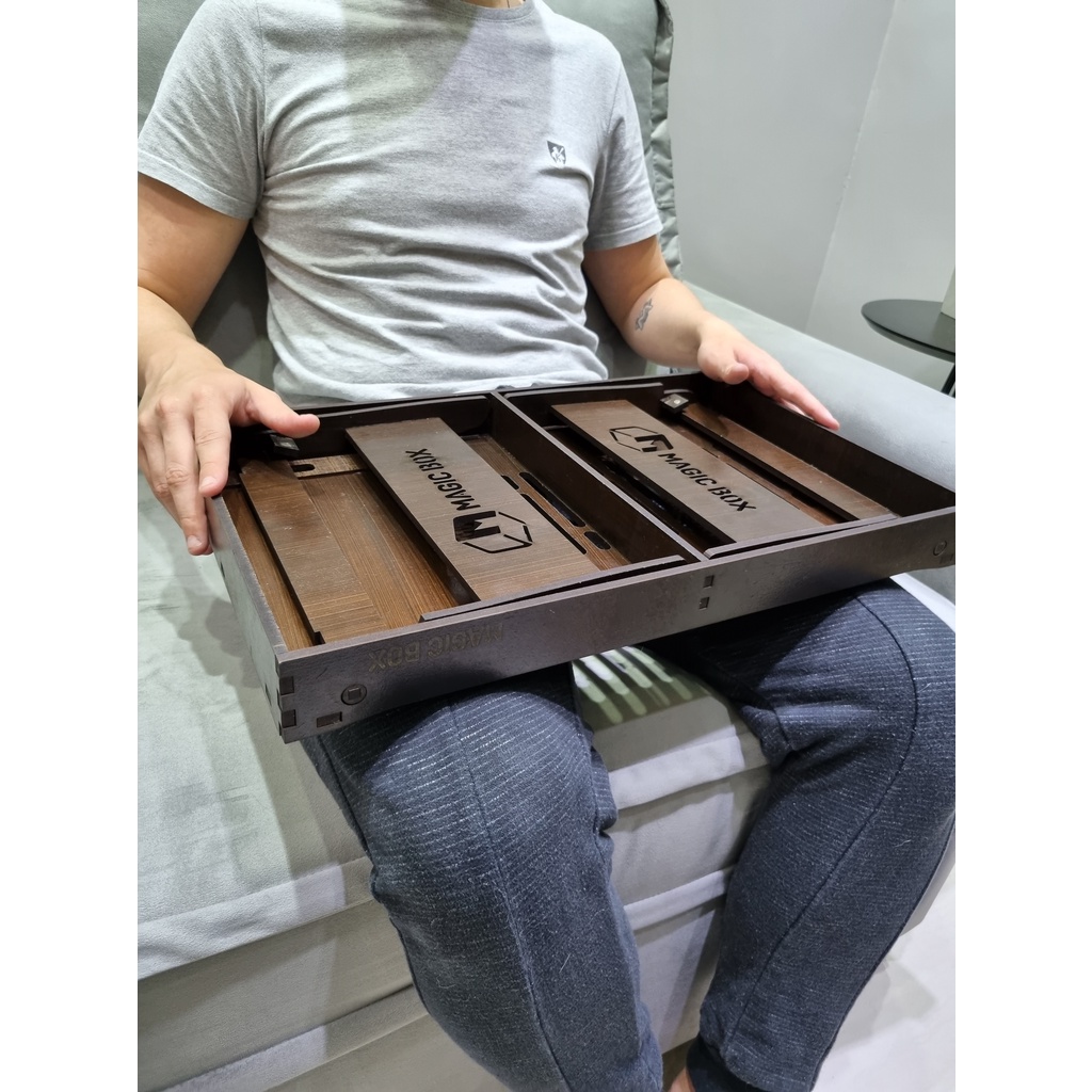 Apoio Suporte para Notebook Dobrável Sofá Cama Colo Bandeja Com Suporte para Celular/ Ideal para usar no sofá ou na cama. - Com abertura para ventilação do Notebook; - Bordas laterais altas para evitar acidentes; - Espaço para Mouse; - Suporte Para Celular; - Travas ao Fechar para Facilitar no transporte; - Material Leve e resistente(MDF 6MM); - Fácil de limpar; - Diversas Utilidades; Ótimo para uso com Notebook, para leitura, para refeições e até para crianças. Possui pés dobráveis para facilitar o transporte. O Suporte de Notebook é fabricado em Mdf de alta resistência de 6MM, material conhecido pela sua alta qualidade e praticidade, o acabamento fica por conta da pintura em Gel com tratamento da superfície o que garante cores mais vivas e fortes, fazendo com que o produto se destaque dos demais vendidos no Mercado. Especificações: Dimensões: Altura: 21cm Altura do vão para as pernas: 17cm Comprimento da Base: 52cm Comprimento com a Perna aberta: 63cm Largura: 32cm Altura(pés fechados): 5cm Garantia: 3 meses contras defeitos de fabricação. Itens da Embalagem: -Suporte Para Notebook Com Suporte para Celular