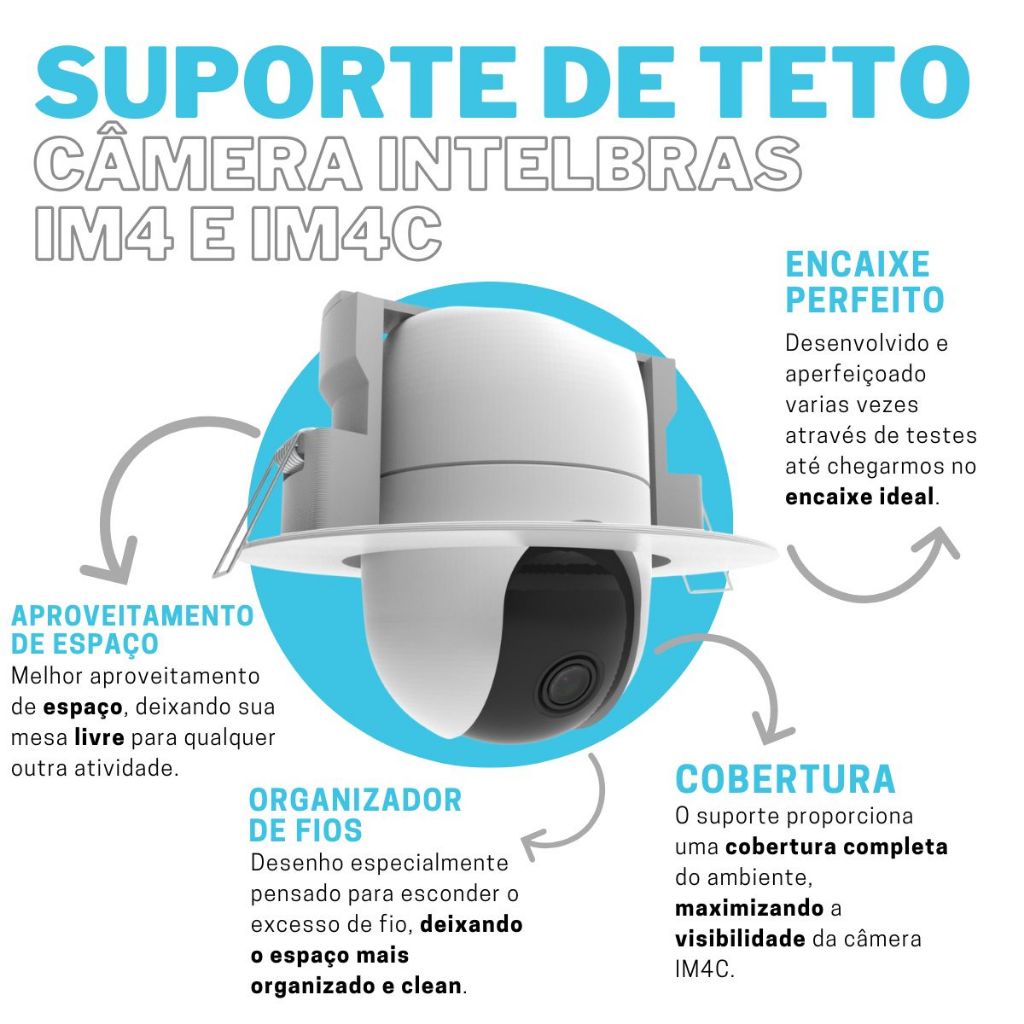 Suporte Apoio Stand para Embutir no Teto Compatível Câmera de Vídeo Intelbras Im4 C Mibo Visão 360