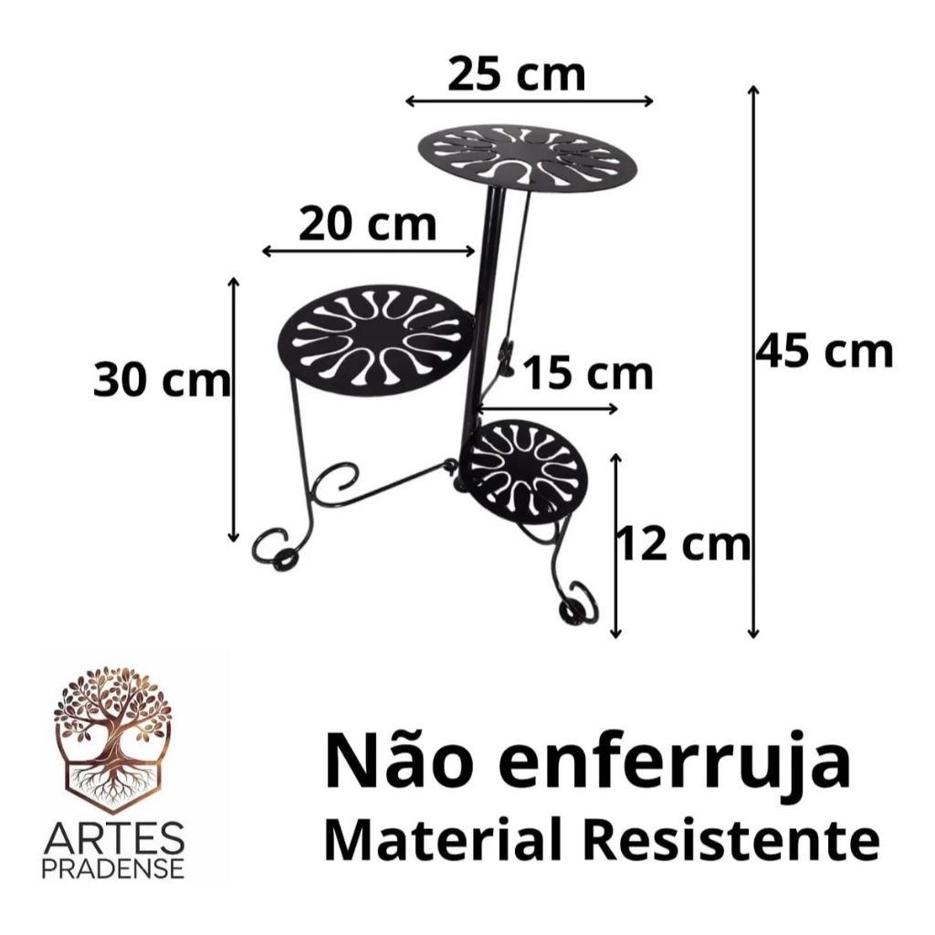 🌿 Floreira Articulada Artes Pradense - Design Exclusivo em Aço Dê um toque de elegância e sofisticação ao seu jardim ou varanda! A Floreira Articulada Artes Pradense é a peça que faltava para destacar suas plantas com estilo e versatilidade. Fabricada com chapa de aço de alta resistência e Pintura Eletrostática, ela garante durabilidade extrema e NÃO ENFERRUJA, sendo perfeita tanto para áreas internas quanto externas. ✨ DIFERENCIAIS DO NOSSO PRODUTO: Articulada: Ajuste os suportes para criar a composição que preferir! Durabilidade Premium: Pintura especial que protege contra sol e chuva. Design Único: Desenhos exclusivos que valorizam qualquer ambiente. Pronto para Uso: Receba, posicione seus vasos e transforme sua casa. 📏 ESPECIFICAÇÕES TÉCNICAS: Comprimento: 46 cm Altura Máxima: 45 cm (Suporte Maior) Altura Intermediária: 30 cm (Suporte Médio) Altura Mínima: 12 cm (Suporte Menor) Diâmetro dos Suportes: Grande: 25 cm Médio: 20 cm Pequeno: 15 cm Material: Chapa de Aço reforçada. Acabamento: Pintura Eletrostática (Antiferrugem). 📦 O QUE VOCÊ RECEBE: 01 Floreira Articulada Artes Pradense. Nota Fiscal de Compra. Garantia de 3 meses contra defeitos de fabricação. 💡 POR QUE COMPRAR CONOSCO? Envio Rápido: Postamos seu pedido em tempo recorde. Compra Segura: Produto original com Nota Fiscal. Atendimento Especializado: Dúvidas? Nossa equipe está pronta para ajudar no chat! Dica de Decoração: Ideal para suculentas, samambaias e flores de época. Use a articulação para aproveitar melhor a luz solar em cada vaso! 🛒 Clique em "Comprar Agora" e garanta a sua!