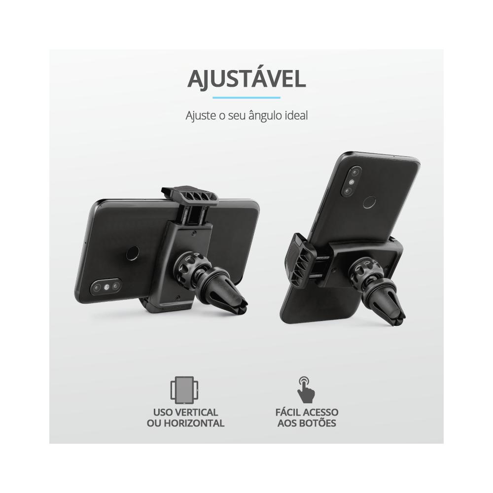 Protegido com Segurança Com o suporte de telefone para automóvel Trust Runo Air Vent pode manter o seu smartphone seguro e protegido enquanto conduz. O suporte se conecta à ventilação do carro e segura firmemente seu smartphone (com ou sem capa) para que você tenha uma visão clara da tela do telefone. Olhos na estrada Graças ao seu ângulo ajustável, o suporte para carro pode girar 360 °, para que você possa navegar e ouvir música com segurança. Todos os botões e conectores do smartphone são acessíveis, proporcionando uma visão clara e acesso à sua tela. Como o suporte não está preso à janela, ele permite uma visão completa da estrada. Clip and Go O design de suporte resistente se encaixa facilmente na maioria das saídas de ar do carro e uma alça acolchoada mantém seu telefone livre de arranhões. No final da viagem, você pode desconectar facilmente o telefone. Além do mais, seu tamanho ultracompacto o torna fácil de guardar ou levar com você. - Compatível com praticamente todos os smartphones (de 65 a 90 mm de largura e até 19 mm de espessura) - Robusto design rotativo em borracha que se encaixa nas grelhas de ventilação mais comuns de qualquer carro - O encaixe expansível fixa em segurança o seu smartphone, mesmo com capaIdeal para navegar, ouvir música e fazer chamadas em modo mãos-livres - Não interfere com a visibilidade da estrada -Total acessibilidade a todos os botões e conetores do smartphone - Pinça almofadada para evitar eventuais danos por riscos