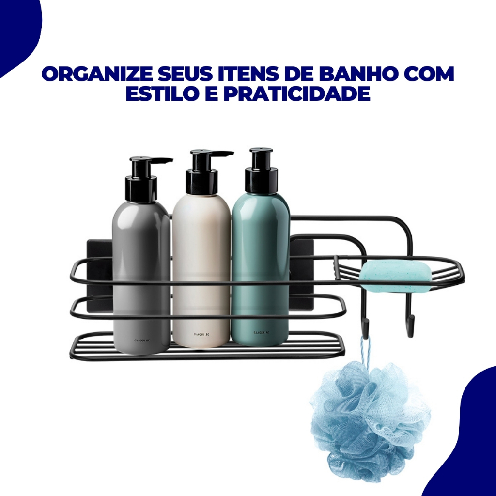 Suporte Banheiro Cantoneira Porta Shampoo Saboneteira Aramado Fita Dupla Face Preto Black Arthi