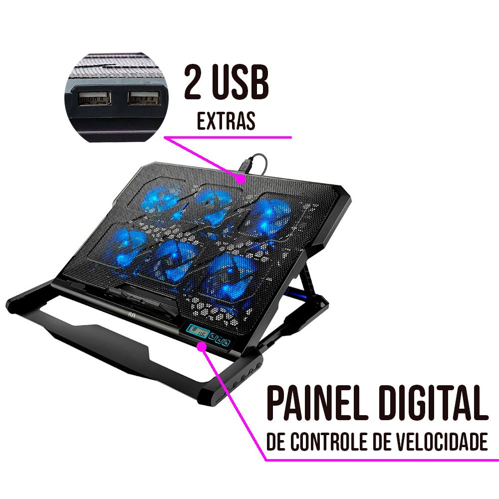 Suporte Base Cooler para Notebook Com 6 fans led Multi com 3 anos de garantia