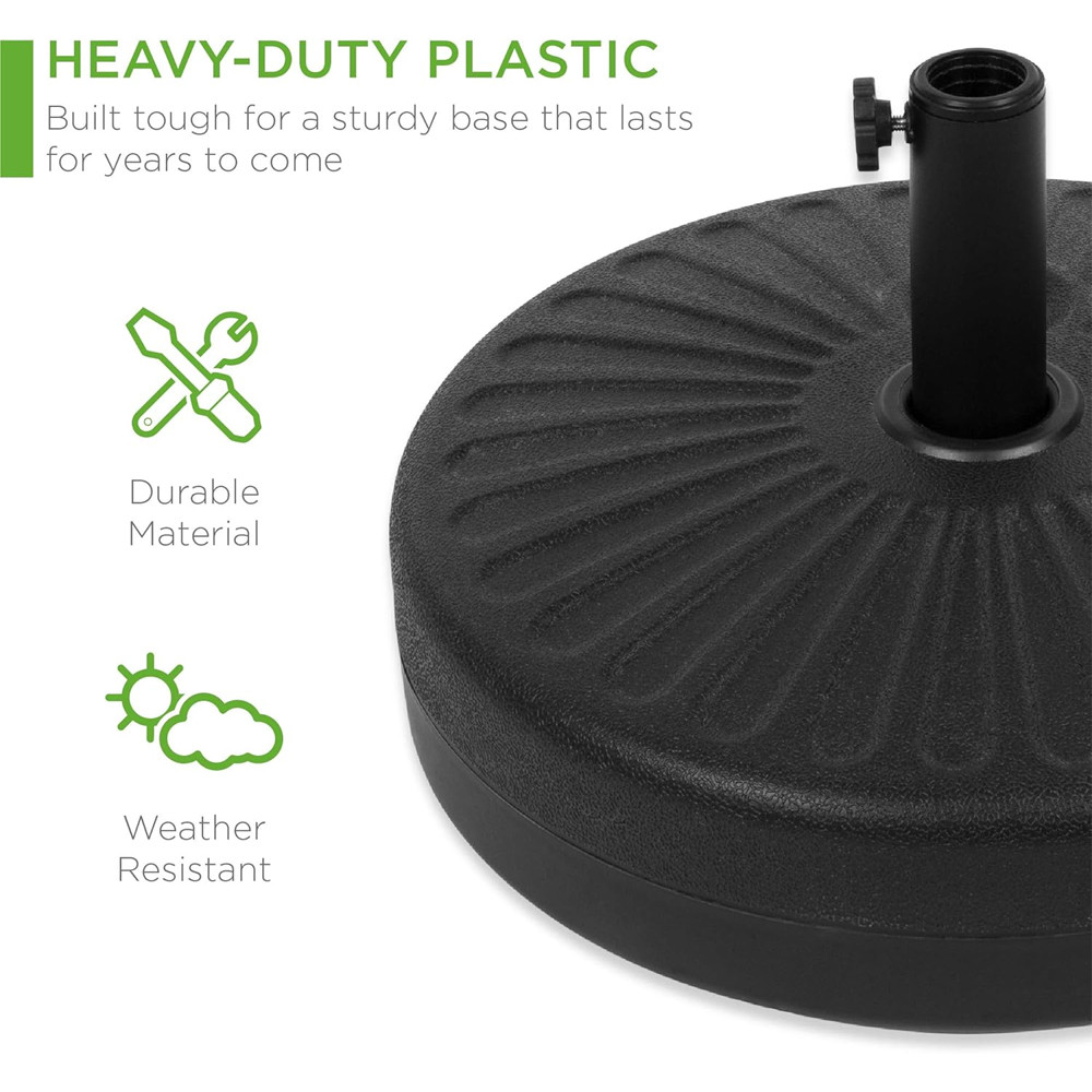 Base Suporte Ruixin JX022-01 Redonda Para Guarda-sol Ombrelone Piscina Jardim - Preenchível Com Água Areia 22kg, Plástico PE, Tubo Haste de Aço Com Botão de Ajuste Para Mastros 1.5 a 1.9 pol 1. Base Suporte Ruixin JX022-01 Para Guarda-sol e Ombrelone: Base redonda e versátil, ideal para fixação em Deck, Piscina, Gramado e Jardim. Projetada para uso externo, proporciona a estabilidade necessária para diversos modelos de guarda-sol. 2. Alta Capacidade de Preenchimento (25 kg): A base é projetada para ser preenchida com até 19 litros de água ou 25 kg de areia, garantindo um peso robusto e seguro para o seu ombrelone. Pode ser facilmente esvaziada para transporte e armazenamento. 3. Material de Alta Durabilidade (Plástico PE Reforçado): Fabricada em plástico HDPE (Polietileno de Alta Densidade) durável e resistente. Inclui um tubo de haste central em aço sólido, garantindo longa vida útil e resistência a intempéries. 4. Ajuste de Botão para Vários Tamanhos de Haste: O tubo de aço acomoda hastes de guarda-sol com diâmetros de 1,5 a 1,9 polegadas. O botão ajustável permite apertar o encaixe, garantindo resistência e estabilidade ideais para mastros de 6 a 10 pés. 5. Design Compacto e Armazenamento Inteligente: O formato redondo com design "raio de sol" se integra harmoniosamente a qualquer decoração externa. O tubo de aço é removível, permitindo que a base seja guardada de forma compacta em períodos de não utilização. Garantia 90 dias