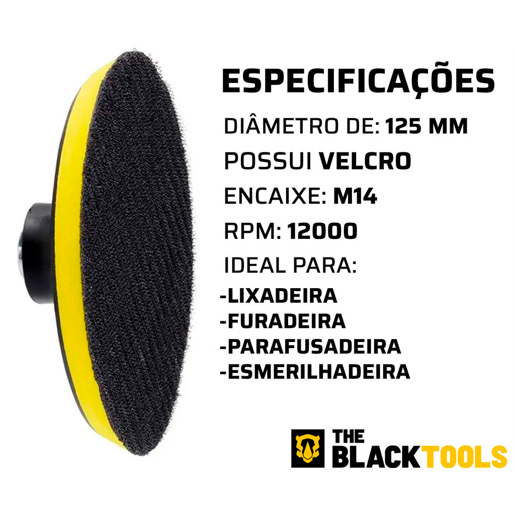 Suporte Boina com Velcro M14 125mm + 10 discos 125mm The Black Tools