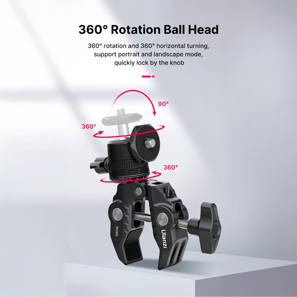 Suporte Braçadeira Ulanzi 1/4 com Cabeça Esférica Preto