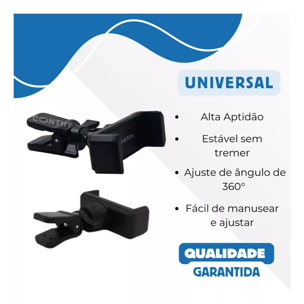 Chegou a solução prática e eficiente para garantir o conforto e a segurança durante suas viagens! Nosso Suporte Veicular Universal para saída de ar-condicionado oferece estabilidade e versatilidade para segurar seu celular enquanto você dirige. Veja seus principais benefícios: - Compatibilidade universal: Encaixa-se em praticamente todos os tipos de smartphones, desde os menores até os maiores modelos. - Instalação simples: Basta encaixar na saída de ar-condicionado do veículo, sem necessidade de ferramentas. - Giro de 360 graus: Ajuste o ângulo de visualização de acordo com a sua preferência, garantindo sempre a melhor visão. - Design compacto: Não bloqueia a ventilação e mantém o interior do carro organizado e funcional. - Funciona em diversos Modelos de Carros. - Grande Poder de Aderência.