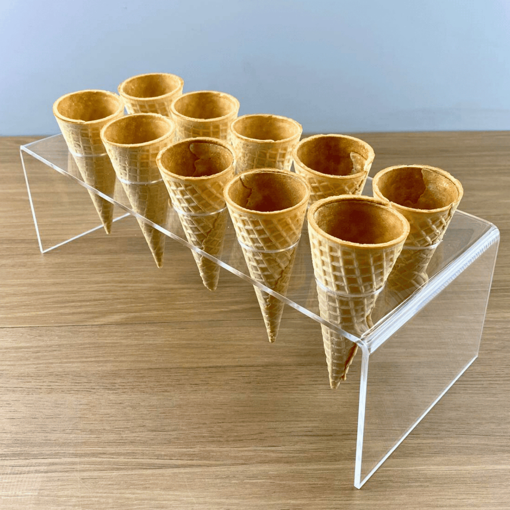 Suporte Casquina Sorvete Temaki Pizza Cone Acrílico 10 Furos Buffet Festas Restaurantes