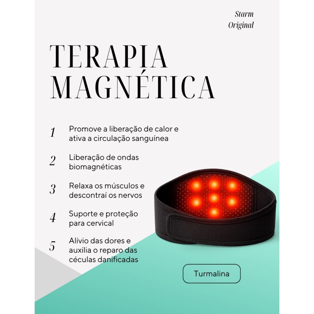 Chega de sofrer com dores e desconfortos no pescoço! Descubra o Colar Cervical Terapêutico de auto-aquecimento Magnético, uma solução inovadora para o alívio de tensões e desconfortos no pescoço. Com um design regulável e flexível, este colar se adapta perfeitamente ao seu corpo, proporcionando conforto durante o uso. A tecnologia de auto aquecimento magnético atua diretamente nas áreas de dor, promovendo uma sensação de relaxamento e bem-estar. Ideal para quem sofre com dores no pescoço, passa longas horas em frente ao computador ou realiza atividades que exigem esforço físico, este colar é uma excelente adição à sua rotina de cuidados pessoais. Além de ser prático e fácil de usar, o colar é discreto e pode ser utilizado em diversas situações, seja em casa, no trabalho ou durante atividades de lazer. Experimente a combinação de conforto e terapia que o Colar Cervical Terapêutico oferece e sinta a diferença na sua qualidade de vida. IMPORTANTE Para potencializar a liberação de calor umedeça levemente com água a parte central do colar antes do uso, quanto mais ajustado ao corpo maior o efeito. Tecnologia com 4 Funções Principais 1. Ação Térmica (FAR Infrared / Autoaquecimento) Auxilia na sensação de aquecimento local, contribuindo para o relaxamento muscular e maior conforto durante o uso. 2. Turmalina Material amplamente utilizado em produtos térmicos por sua capacidade de reter e distribuir calor, promovendo sensação de bem-estar. 3. Autoaquecimento Contínuo Liberação gradual de calor sem necessidade de eletricidade, fios ou baterias. 4. Ação Biomagnética Possui ímãs distribuídos estrategicamente, que auxiliam no estímulo leve da região do pescoço, proporcionando uma sensação de massagem passiva. Produto de uso auxiliar. Não substitui avaliação ou tratamento médico. Especificações do Produto: Material: Tecido respirável turmalina 7 esferas magnéticas Tecnologia: Auto-aquecimento térmico Cor: Preto Comprimento total: 50 cm Largura: 12 cm Circunferência indicada do pescoço: até 47 cm Tamanho ajustável