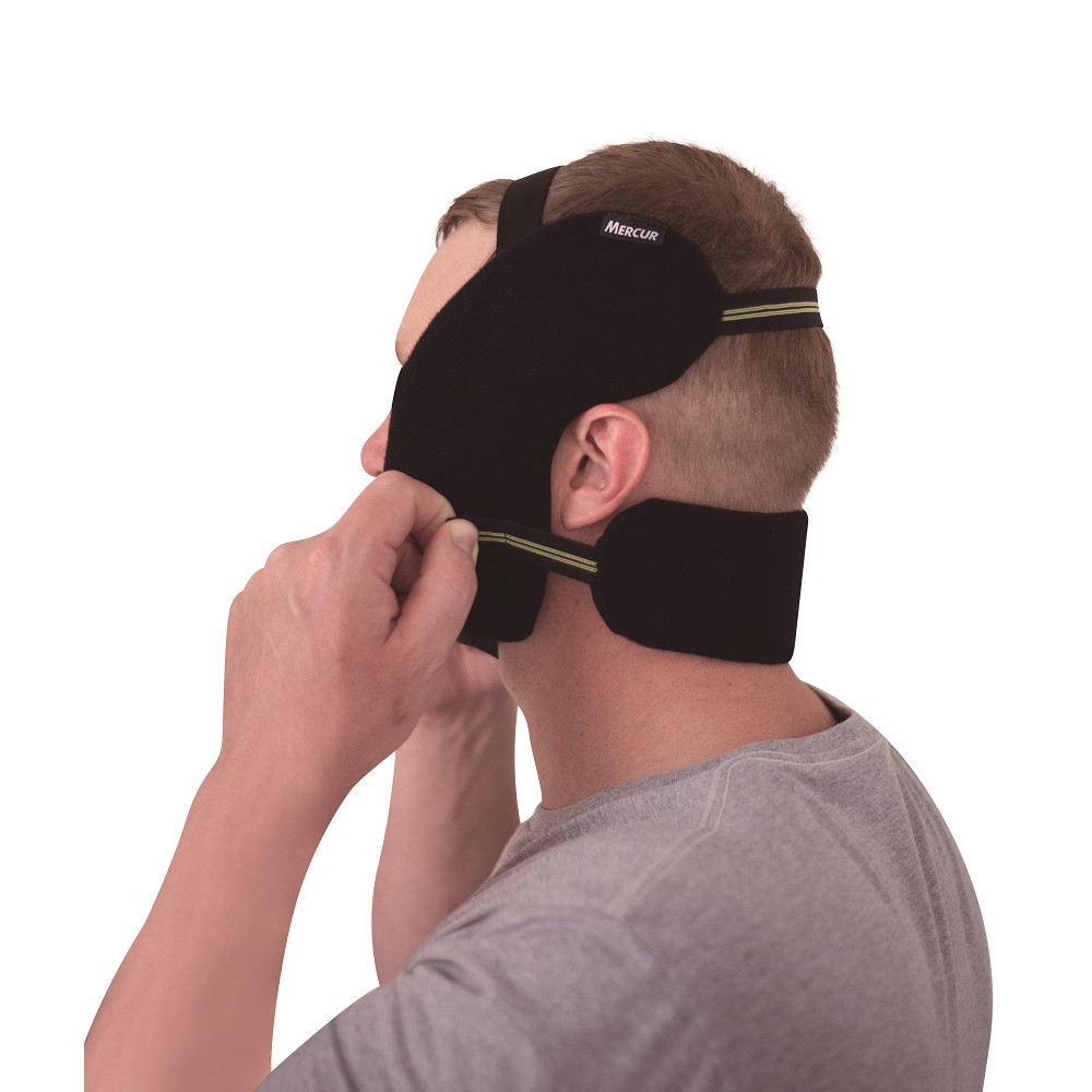 CARACTERÍSTICAS Aplicação bilateral simultânea, com as mãos livres. Abrange músculos faciais e cervicais. Prático, pode ser aquecido em água quente ou no micro-ondas. Capa lavável. Anatômico e ajustável. COMPOSIÇÃO: Capas: Tecido interno: poliamida e elastano. Tecido externo e fecho aderente: poliamida. Tiras: poliéster e elastano. Filme: camadas de poliamida/polietileno internamente e polietileno na camada externa. Gel: água purificada, polímero vinílico, trietanolamina, conservante e agente anticongelante. PRAZO DE VALIDADE: 3 anos ANVISA: 81284250002 INDICAÇÃO Este produto é indicado principalmente para aplicação de CALOR, promovendo alívio em casos de: Dores e tensões musculares na região da face decorrentes da DTM e DOF (espasmos musculares associados ou não a travamentos mandibulares e estalos articulares). Dores e tensões musculares provenientes do Bruxismo. Dores e tensões musculares na região cervical decorrentes da DTM e DOF (cervicogênica e tensional). DTM articular em fase crônica. Tensão da musculatura facial, como em casos de estresse. A aplicação de FRIO auxilia nos seguintes situações: DTM articular em fase aguda (inflamatória). Pós-traumas, edemas e hematomas faciais. Processos inflamatórios agudos no face. Pós-cirúrgicos e procedimentos bucomaxilofaciais imediatos (dentários, estéticos, cirurgia ortognática). Procure a orientação de um profissional da saúde para o tratamento adequado. MODO DE USAR COMO MONTAR O PRODUTO: 1 - Coloque a bolsa gel com a descrição em branco "lado esquerdo" na capa com as tiras fixas, seguindo a direção da seta. 2 - Da mesma forma, coloque as outras bolsas nas respectivas capas. 3 - Posicione as peças de mesmo formato uma sobre a outra, de forma espelhada, com o tecido liso voltado para dentro. 4 - Fixe as tiras nas áreas demarcadas mais próximas e seu produto estará pronto para uso. COMO AQUECER E RESFRIAR: Aqueça as bolsas preferencialmente em água quente. Em um recipiente com água quente: remova as capas e mergulhe somente as bolsas de gel em 3 litros de água fervendo (fora do fogo) por 3 minutos. Caso opte por aquecer as bolsas no micro-ondas, sem água: abra as tiras aderentes e coloque o produto completo, três bolsas gel e suas respectivas capas, para aquecer. Centralize as peças no prato do micro-ondas, de modo que não fiquem dobradas ou sobrepostas. Aqueça por 30 segundos e verifique se a temperatura está confortável para uso. Se for necessário aquecer um pouco mais o produto, retorne as bolsas ao micro-ondas e aqueça-as em ciclos de 10 segundos, até que atinjam a temperatura ideal. O produto deve ser aquecido por completo. Não aqueça as bolsas separadamente. Após o aquecimento, se necessário, siga os passos de montagem do produto e espalhe bem o gel para uniformizar a temperatura. Aplique por aproximadamente 20 minutos ou conforme a orientação do profissional. Caso indicada, a terapia de calor úmido pode ser aplicada com este produto, basta utilizar água morna para umedecer o tecido do suporte após aquecê-lo. Para resfriar, leve o produto completo (capas e bolsas gel) ao freezer/congelador por 1h30min. Caso exceda o tempo indicado, orientamos aguardar atingir a temperatura ambiente e reiniciar o processo de resfriamento. Evite o contato direto com as paredes do freezer para não danificar o produto. Para proteger da umidade, envolva o produto em um saco plástico ou recipiente isolante próprios para congelamento. Após o resfriamento, espalhe bem o gel para uniformizar a temperatura. Aplique por aproximadamente 10 minutos ou conforme a orientação do profissional. Caso indicada, a terapia de frio úmido pode ser aplicada com este produto, basta utilizar água fria para umedecer o tecido do suporte após retirá-lo do freezer/congelador. Informações resumidas sobre aquecimento/resfriamento também podem ser encontradas na etiqueta interna do produto. COMO APLICAR SUA BOLSA: Orientações para bolsas laterais: Para melhor conforto, antes de vestir procure prender o cabelo e remover acessórios como óculos e brincos grandes. 1- Posicione o produto na frente do rosto, de modo que o logotipo Mercur fique posicionado do lado esquerdo e para cima, e a tira verde voltada para trás da cabeça. Solte a tira preta inferior. 2 - Encaixe o produto de cima para baixo na cabeça, posicionando as bolsas sobre o masseter (lateral do rosto/bochechas) e o temporal (acima das orelhas); 3 - Fixe a tira inferior abaixo do queixo. Procure não cobrir as orelhas com o produto. Se necessário, reajuste as tiras de modo que o produto fique adequado e confortável ao tamanho do rosto. 4 - Distribua o gel uniformemente dentro das bolsas, pressionando de baixo para cima. Orientações para a bolsa cervical: 1 - Abra os fechos aderentes e posicione o produto na nuca, fixando-o nas bolsas laterais. 2 - Procure passar as tiras
