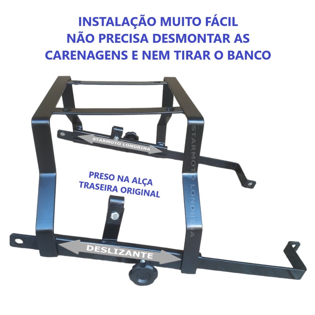 Suporte de Baú Cg TITAN e FAN 1995 até 2008 - Pode Levar Garupa - Bagageiro Deslizante para Caixa de Moto 125 e 150