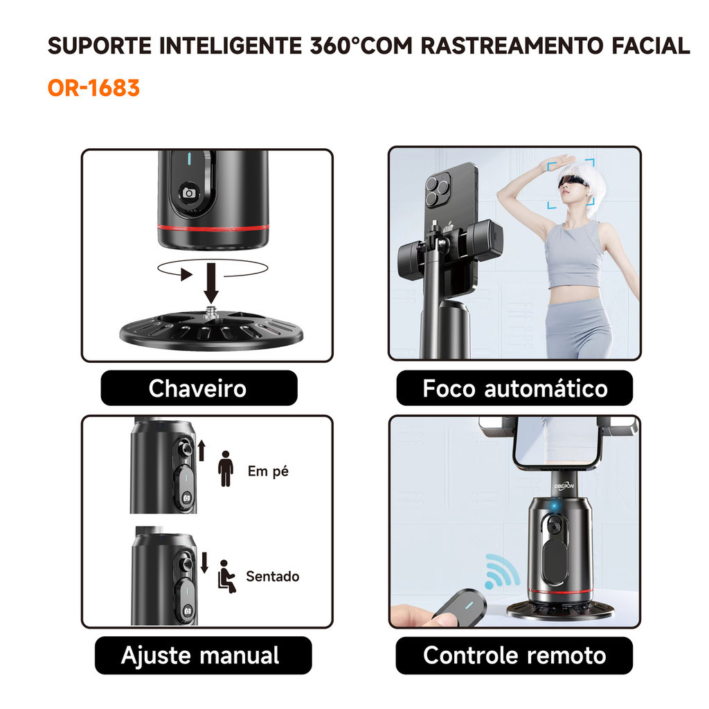 Suporte de Celular Rastreamento Facial Gimbal Estabilizador Inteligente Bluetooth Controle Remoto Oberon OR-1683