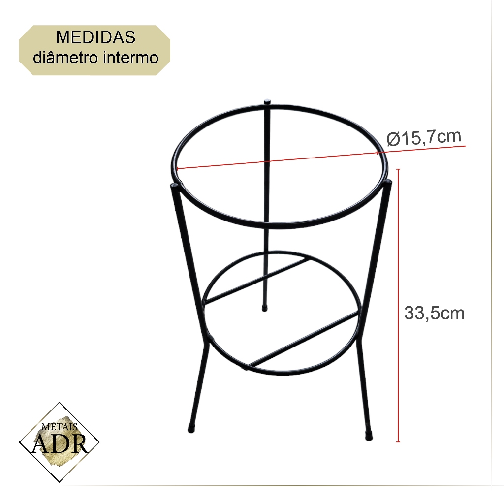 SUPORTE DE CHÃO (TRIPÉ) PARA EXTINTORES PEQUENO DE 4 E 6KG produzido em aço carbono. Cor: Preto "Pintura Eletrostática" Diâmetro interno 15,7cm Altura 33,5 cm Uso exclusivo para extintores de 4 a 6 kg. Acabamento: Pintura Eletroestática na cor Preto. Com borracha nas pontas dos pés. NÃO INCLUSO O EXTINTOR.
