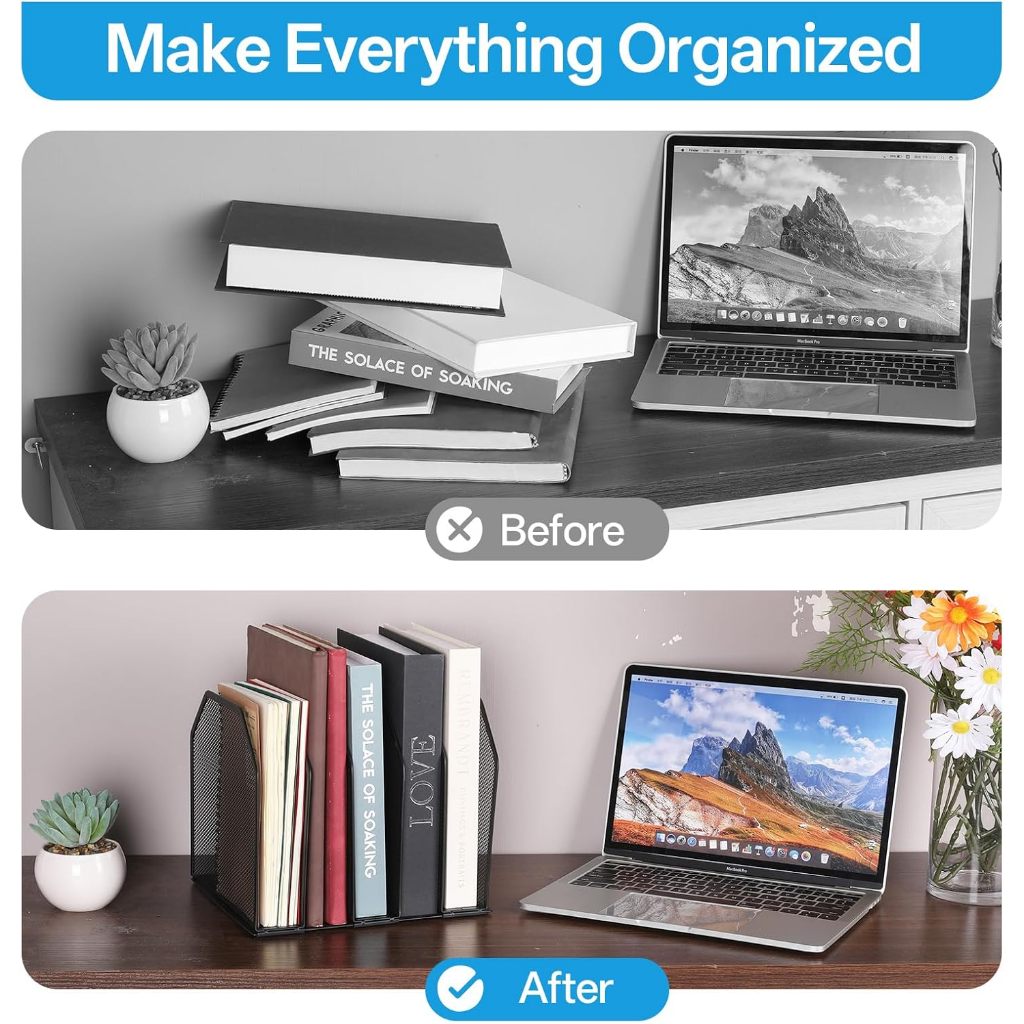 Organize seus livros, cadernos e pastas de forma prática e elegante com o Suporte de Livros Organizador de Mesa em Ferro. Ideal para escritórios, home office, escolas, bibliotecas e ambientes corporativos, ele mantém seus materiais sempre em ordem e ao alcance das mãos. Produzido em ferro resistente com acabamento em pintura preta, possui estrutura firme e design moderno em tela metálica, garantindo alta durabilidade e visual profissional para qualquer ambiente. Seu formato com divisórias verticais facilita a separação de livros, apostilas, revistas, catálogos e documentos, evitando que fiquem tombados ou desorganizados sobre a mesa ou estante. Principais Benefícios Mantém livros e documentos organizados Estrutura em ferro durável e resistente Design moderno e profissional Ideal para mesa, estante ou prateleira Facilita o acesso rápido aos materiais Especificações Técnicas Material: Ferro Cor: Preto Tipo: Suporte / organizador de livros Dimensões aproximadas: 24 x 21,5 x 20,2 cm Conteúdo da Embalagem 1 Suporte de Livros Organizador Produto funcional, resistente e indispensável para quem busca organização, praticidade e um ambiente de trabalho mais produtivo.