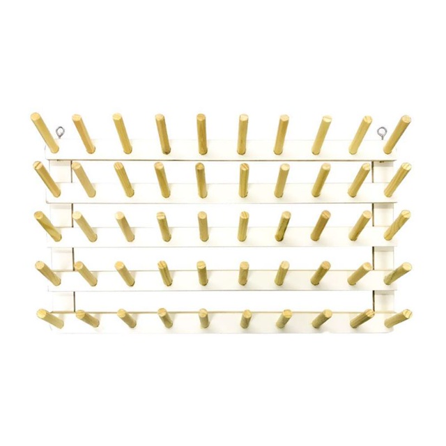 Um acessório extremamente útil e necessário para sua rotina de trabalho em seu ateliê. Ideal para organizar seus cones de linha e mantê-los visíveis em seu local de trabalho Quantidade de Cones:50 Material:MDF Medidas: 67 cm de largura 38 cm de comprimento 11 cm de altura Pinos de 8,5 centímetros *Ele é enviado desmontado (*Os pinos já vão colados, as barras estruturais vão soltas para serem parafusadas. *)para que não haja riscos de ser danificado no envio.