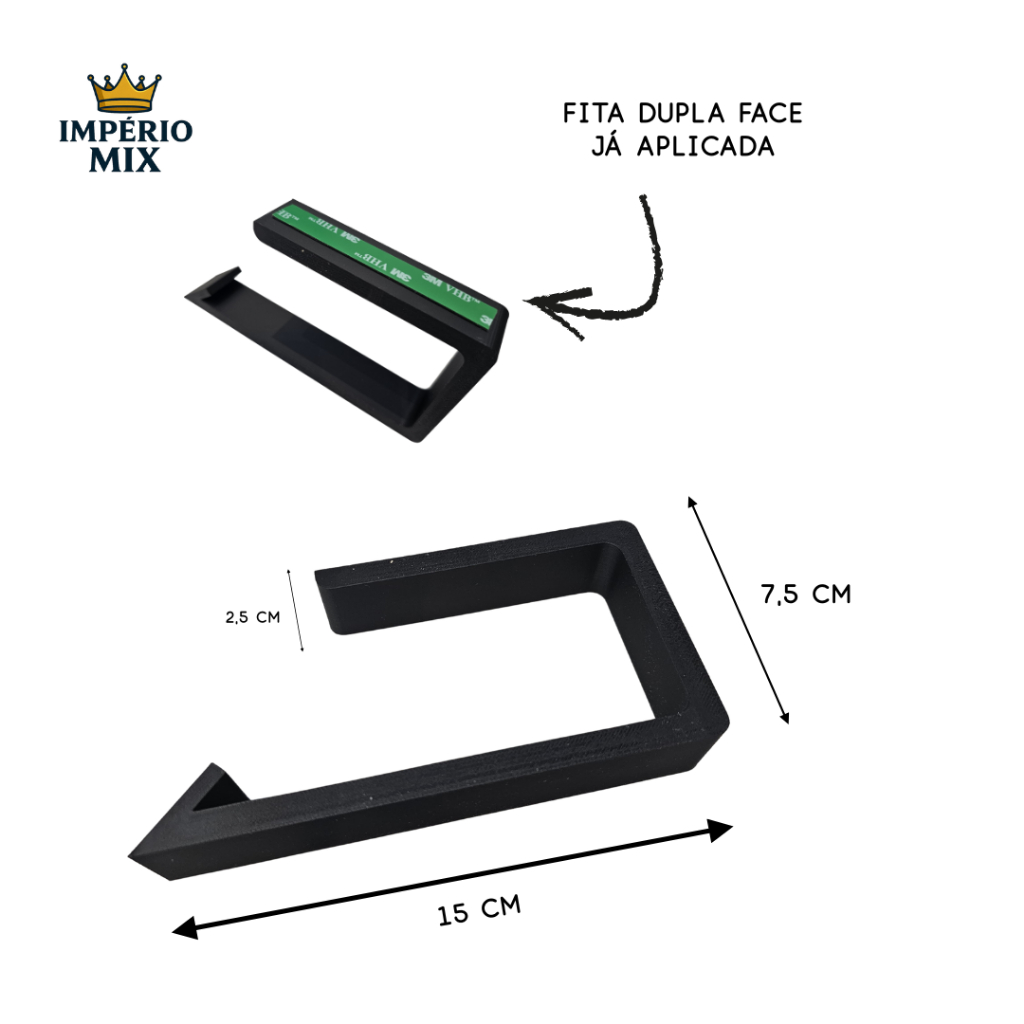 🖤 SUPORTE DE PAPEL HIGIÊNICO PREMIUM – DESIGN MODERNO E SEM FUROS! Transforme o visual do seu banheiro com um toque de elegância! Nosso suporte é feito em PLA de alta qualidade, com acabamento fosco e linhas minimalistas que combinam com qualquer ambiente moderno. ✨ CARACTERÍSTICAS PRINCIPAIS: ✅ Design sofisticado e minimalista — combina com banheiros modernos e elegantes. ✅ Fixação super forte com fita dupla face 3M VHB (já instalada). ✅ Sem furos nem sujeira — instalação rápida e limpa. ✅ Feito em PLA Premium — resistente, durável e sustentável. ✅ Tamanhos ideais: 15 cm (comprimento) x 7,5 cm (altura) x 2,5 cm (largura). ✅ Cores disponíveis: Preto Fosco 🖤 | Branco Clean 🤍 💡 IDEAL PARA: 🛁 Banheiros modernos 🏠 Lavabos e suítes 🏢 Escritórios e espaços comerciais 🧱 INSTALAÇÃO FÁCIL (sem ferramentas): 1️⃣ Limpe bem a superfície. 2️⃣ Retire o protetor da fita 3M. 3️⃣ Posicione o suporte na parede e pressione por 30 segundos. 4️⃣ Aguarde 12h antes de colocar o rolo. 💬 POR QUE ESCOLHER ESTE SUPORTE? ✔ Visual de alto padrão ✔ Instalação em segundos ✔ Materiais sustentáveis (PLA) ✔ Envio rápido e nacional 🇧🇷 📦 INCLUI: 1x Suporte de papel higiênico (cor escolhida) 1x Fita dupla face 3M VHB já aplicada ❓ FAQ – Perguntas Frequentes 🔹 Suporta bem o peso do rolo? Sim! A fita 3M VHB tem aderência industrial e suporta facilmente o peso de rolos grandes. 🔹 Posso remover sem danificar o azulejo? Sim. A remoção é simples — basta aquecer levemente a fita com secador e puxar devagar. 🔹 Pode molhar? Sim, o PLA é resistente à umidade, mas evite contato direto com jatos de água.