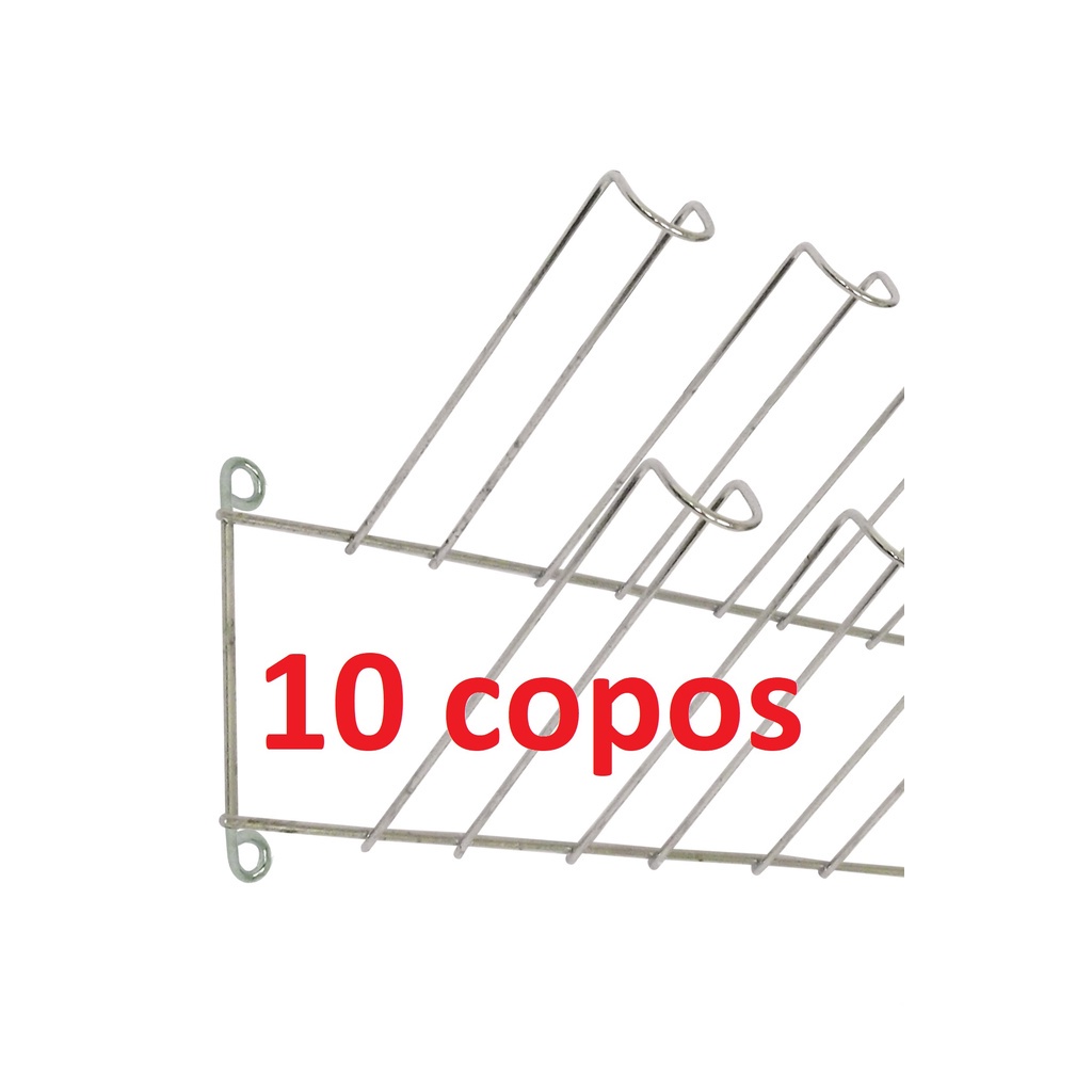 Escorredor de Copos Para Parede 10 Lugares Obs: Parafusos e buchas não incluídos. Acabamento: Cromado Dimensões: C13 x L38 x A17 Peso: 0,15 kg