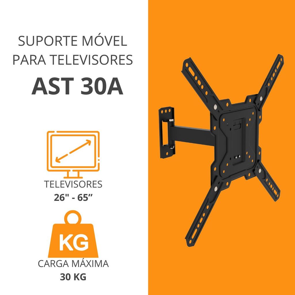Suporte de Parede Móvel Para TV 26" A 65" Amvox AST 30A VESA Black