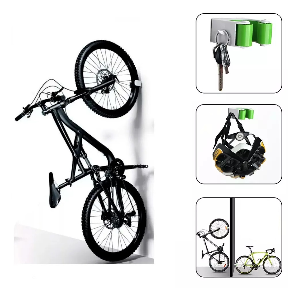 Este suporte de parede é um dos menores suporte para bicicleta do mundo. Deve ser usado com, pelo menos, uma das rodas apoiadas no chão. Você não vai acreditar que algo tão pequeno possa funcionar tão bem, mas funciona. Ele é pequeno, discreto com um design moderno, esse suporte ajuda a otimizar o espaço na sua garagem ou na sua varanda. Ele trava a bicicleta pelo pneu, mantendo-a firme e estável. Não danifica a pintura ou o aro da sua bicicleta. Feito de plástico de alta qualidade, para que tenha uma longa vida útil de maneira resistente e eficiente Pode ser utilizado em qualquer lugar e de maneira horizontal ou vertical. Além disso, o engate possui 2 ganchos laterais multifuncionais, pode pendurar luvas, capacetes, chaves e outros pequenos objetos. É fácil de instalar em qualquer tipo de parede ou superfície vertical, não ocupa espaço e é fácil de usar. ******** ATENÇÃO ********* Pode ser usado com a bike tanto na VERTICAL quanto na HORIZONTAL. Nome: Plug de estacionamento de bicicleta Cor: Preto, azul, vermelho ou verde Material: PC de alta qualidade Tipo: Mountain bike Peso líquido do produto: Cerca de 90 g Tamanho: 8 * 7,5 * 4 cm Modelo especifico para bicicletas Mountain Bike Serve em pneus de 42 a 60 mm ou 1.75 a 2.5 Suporta bicicletas até 30 Kg Deve ser instalado verticalmente ou horizontalmente em estrutura de drywall, tijolo ou viga com, pelo menos, uma roda no chão. Conteúdo do pacote 1 x Plug de engate rápido 1 x Chave Allen 2 x Buchas 2 x Parafusos #suporte bike bicicleta #suporte clug mtb #estacionamento para bike bicicleta