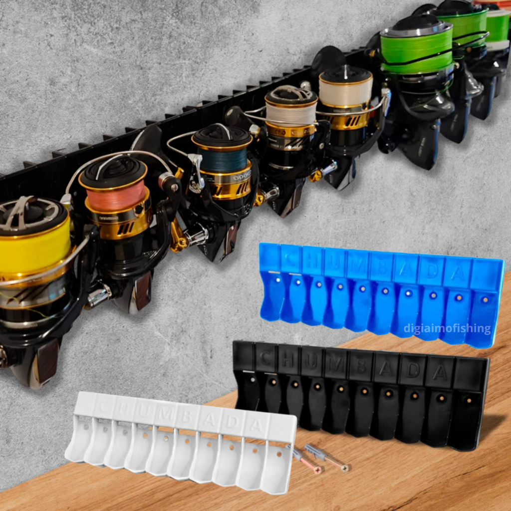 Suporte de Parede para Molinetes Organizador Expositor Tralha de Pesca Chumbada