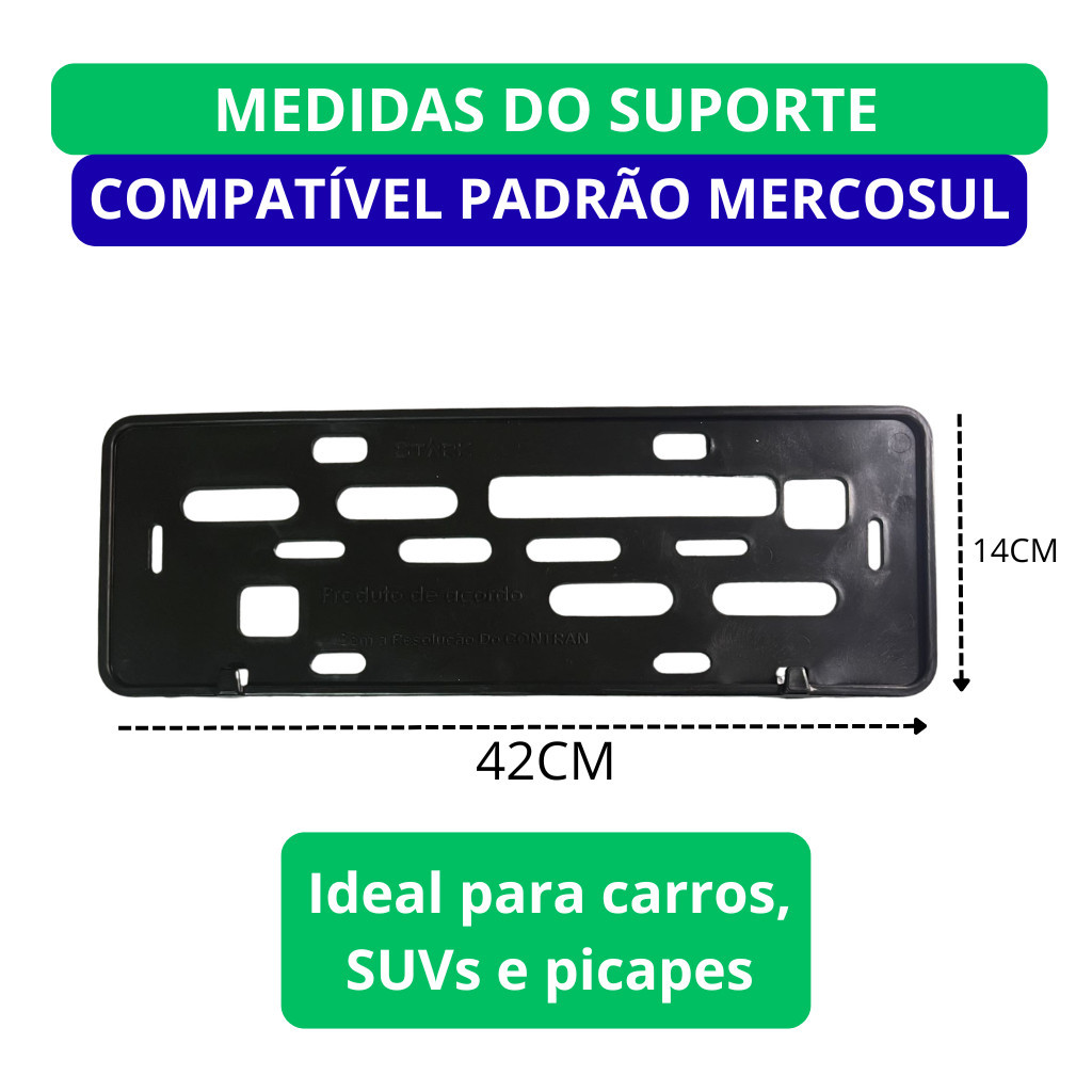 | Suporte de Placa Mercosul Dianteiro e Traseiro para Carro + Kit Ins... este produto | R$ 19,39 | 30% | 4.8/5 | 14 |