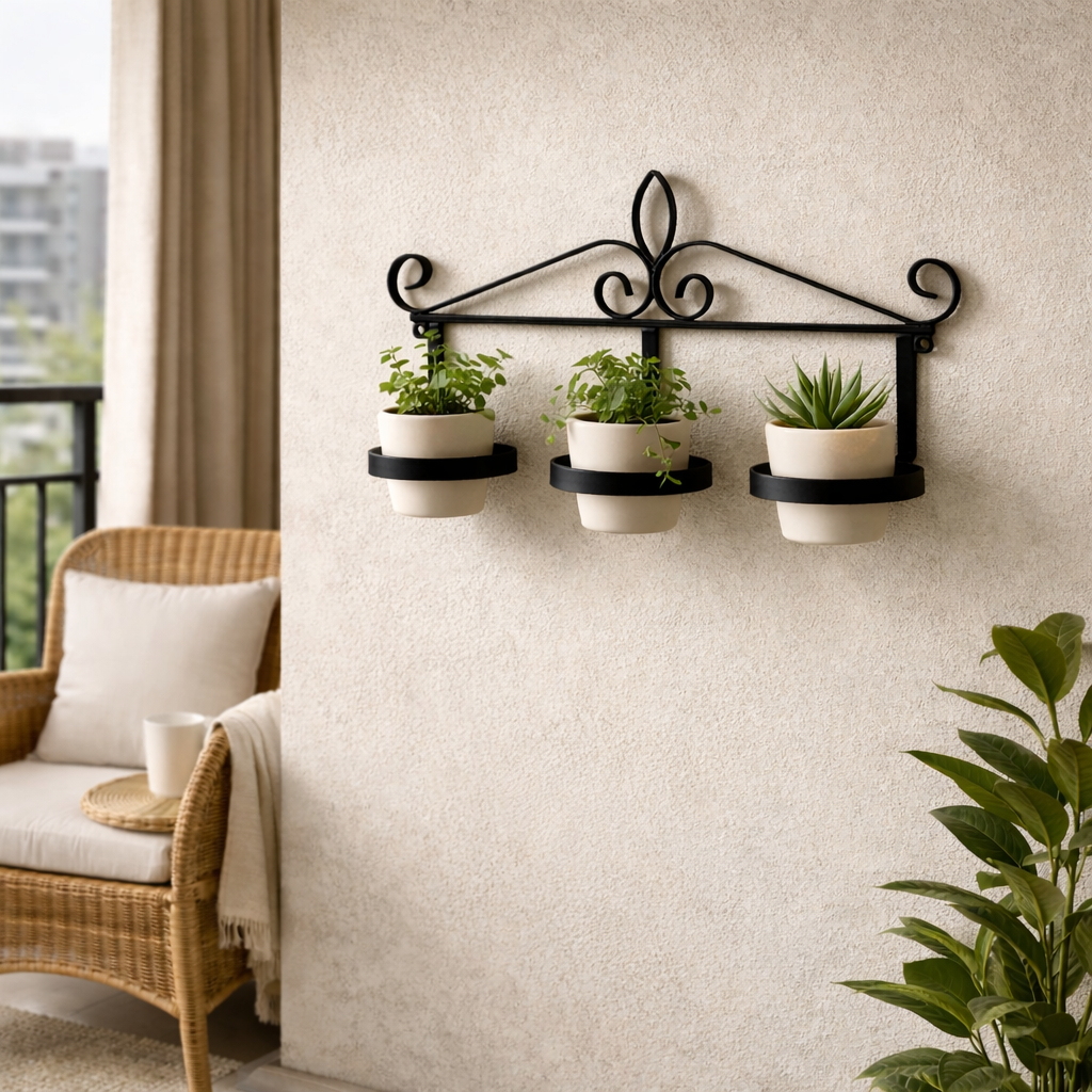 Deixe suas plantas ainda mais lindas com esse suporte de parede em ferro preto, ideal para dar um toque de charme e elegância à sua varanda, jardim ou em qualquer lugar que deseje levar uma vida com um toque de natureza! Com design delicado e estrutura resistente de ferro, ele acomoda três vasinhos (modelo padrão 8–10cm de diâmetro), valorizando o ambiente e otimizando o espaço vertical. Destaques do produto: Estrutura em ferro com pintura eletrostática preta, resistente e durável Design decorativo que combina com diversos estilos (moderno, rústico, boho ou minimalista) Ideal para vasos pequenos, suculentas, hortas ou flores artificiais Fácil instalação e fixação na parede, com parafusos inclusos Medidas aproximadas: Comprimento total: 50cm Altura: 14cm Diâmetro de cada suporte: 10cm Crie um cantinho verde cheio de estilo e harmonia com esse suporte decorativo para vasos — um toque de natureza e design na sua casa!