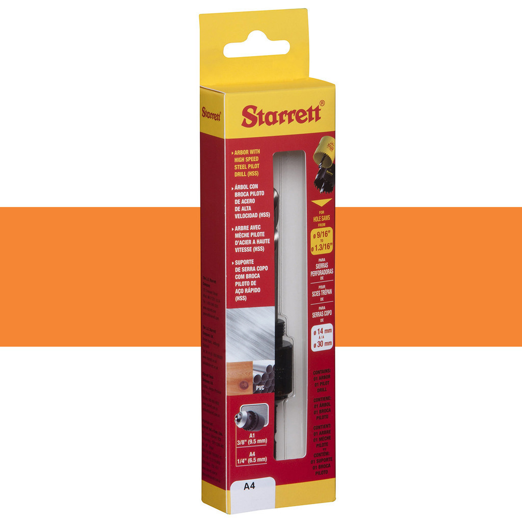 Suporte de Serra Copo Starrett 14 a 30mm Mandril 1/4" HSS A4 Descrição do Produto: - O Suporte de Serra Copo A4 é a escolha ideal para otimizar seus cortes com serra copo Starrett, proporcionando estabilidade e precisão superiores; - Projetado para profissionais que valorizam qualidade, precisão e eficiência em suas operações de perfuração, este suporte oferece resultados excepcionais em uma variedade de materiais. Características: - Fabricado com materiais resistentes e duráveis para garantir longevidade e desempenho confiável; - Encaixe seguro para a serra copo, evitando deslizamentos indesejados durante a perfuração e mantendo a estabilidade; - Estabilidade aprimorada com estrutura robusta que minimiza vibrações, resultando em cortes mais precisos e limpos; - Acompanhado de broca piloto em aço rápido HSS (High-Speed Steel), proporcionando excelente resistência ao calor e desgaste; - Versatilidade para acomodar diferentes tamanhos de serras copo, permitindo perfuração em uma ampla variedade de diâmetros, adaptando-se às necessidades específicas do usuário; - Uso com 90 dias de garantia Starrett. Aplicações: - Instalações elétricas em metal e PVC; - Trabalhos de carpintaria e marcenaria em madeira dura e macia; - Perfurações em metais como aço, alumínio e ferro; - Perfurações precisas em plásticos e PVC para instalações hidráulicas e de tubulações. Dados Técnicos: - Marca: Starrett; - Modelo: A4; - Para serra copo com diâmetro: 14 - 30mm (9/16 - 1.3/16"); - Haste: 1/4" - 6,5mm; - Mandril: 1/4" - 6,5mm. Itens Inclusos: - 01 Suporte de Serra Copo Starrett 14 a 30mm Mandril 1/4" HSS A4