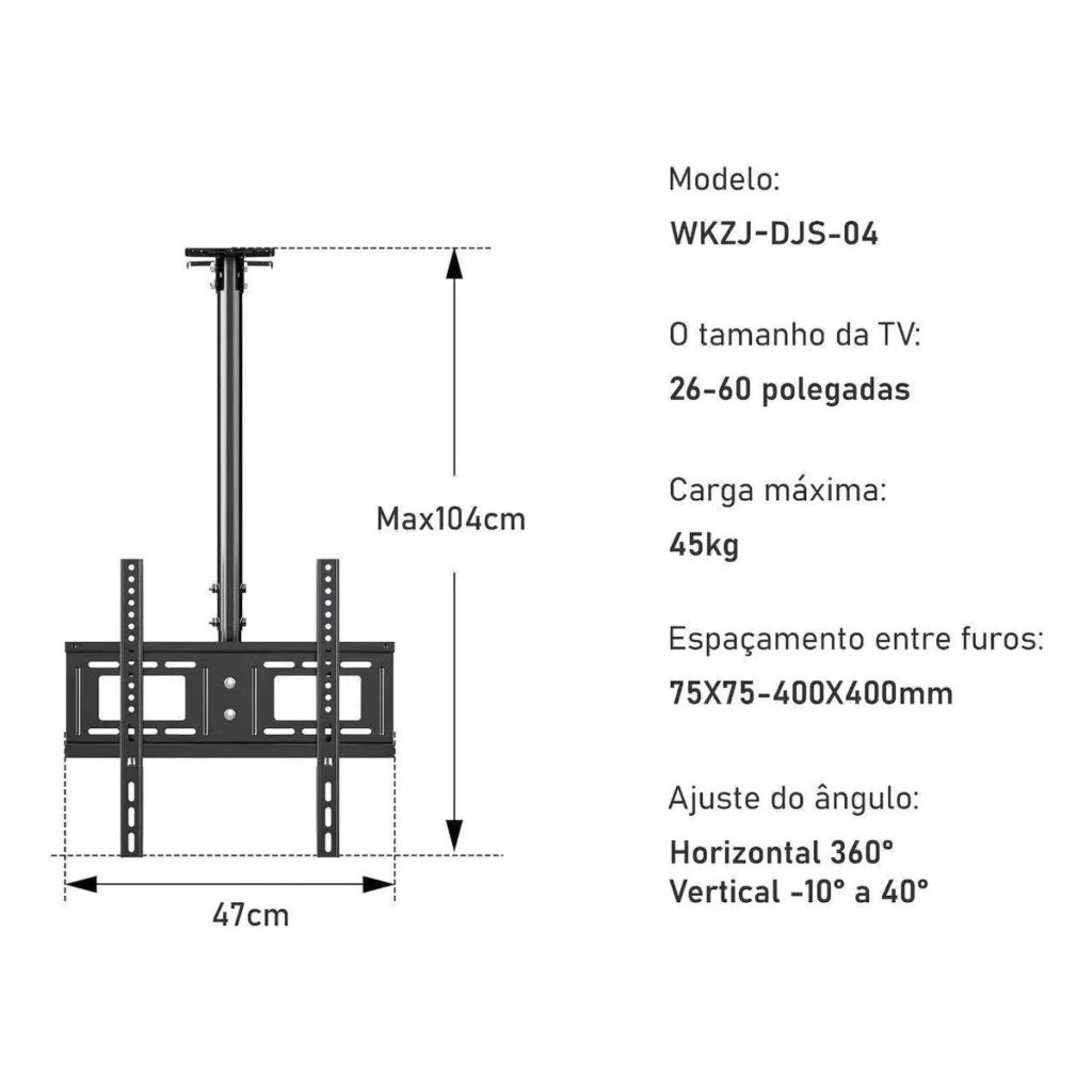 Suporte De Teto Para Tv 26'' a 60'' Giro 360° Inclinável Lcd Led Qled Oled Samsung LG Universal 60 Polegadas