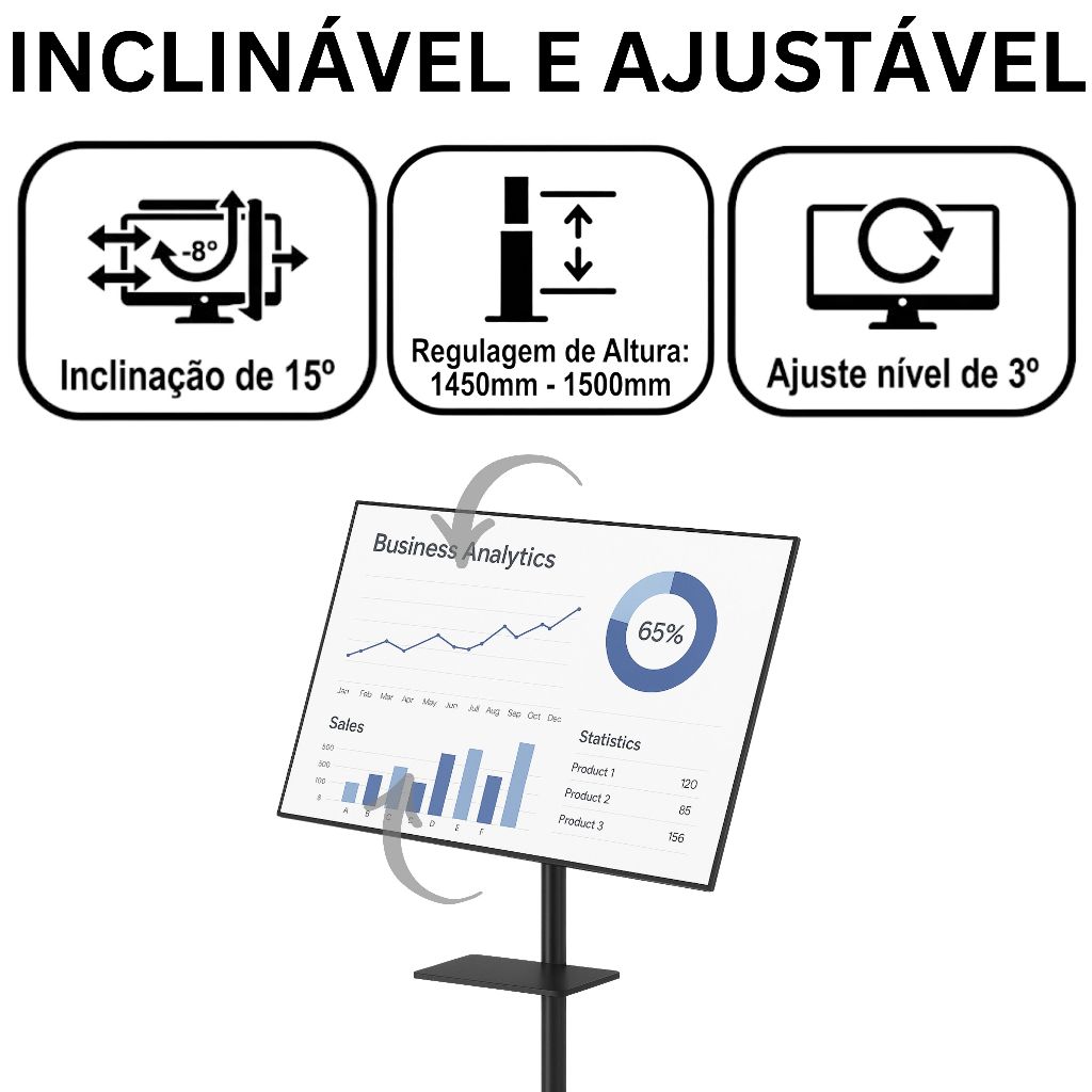 Suporte TV com Bandeja 23-60 Polegadas O suporte pedestal da Giant Innovation foi desenvolvido para oferecer estabilidade, praticidade e um visual moderno. Ideal para residências, empresas, eventos e até estações gamers. Com rodinhas, você pode mover sua TV para qualquer lugar com facilidade e segurança, sem precisar desmontar nada. ° Compatível com TVs LCD, LED e Plasma ° Ajuste de altura, inclinação e rotação ° Rodinhas para fácil movimentação ° Bandeja organizadora (22x30cm) ° Padrão VESA: 75x75 até 400x400 ESPECIFICAÇÕES TÉCNICAS ° Compatibilidade: TVs de 23” a 60” ° Peso suportado: até 35kg ° Padrão VESA: 75x75 até 400x400 ° Inclinação e rotação ajustáveis ° Bandeja auxiliar: 22cm x 30cm (ideal para consoles, notebooks e acessórios) ° Rodízios com trava: mobilidade total e segurança ° Material: Aço carbono com pintura eletrostática ° Acompanha manual de instalação ° ORGANIZAÇÃO E CONFORTO Possui bandeja organizadora de cabos, mantendo tudo em ordem e com visual limpo. A altura regulável e o sistema inclinável/giratória proporcionam a melhor visão de qualquer ângulo — perfeito para quem busca imersão total em jogos ou apresentações. INSTALAÇÃO SIMPLES Acompanha manual e todos os acessórios necessários. Mesmo quem nunca instalou um suporte consegue montar sem dificuldades. GARANTIA E CONFIANÇA ° Garantia do vendedor: 90 dias ° Produto novo e lacrado ° Envio rápido e seguro DESTAQUES ° Design moderno e robusto ° Bandeja multiuso prática ° Movimentação fácil com rodinhas ° Ideal para residências, escritórios, escolas e eventos