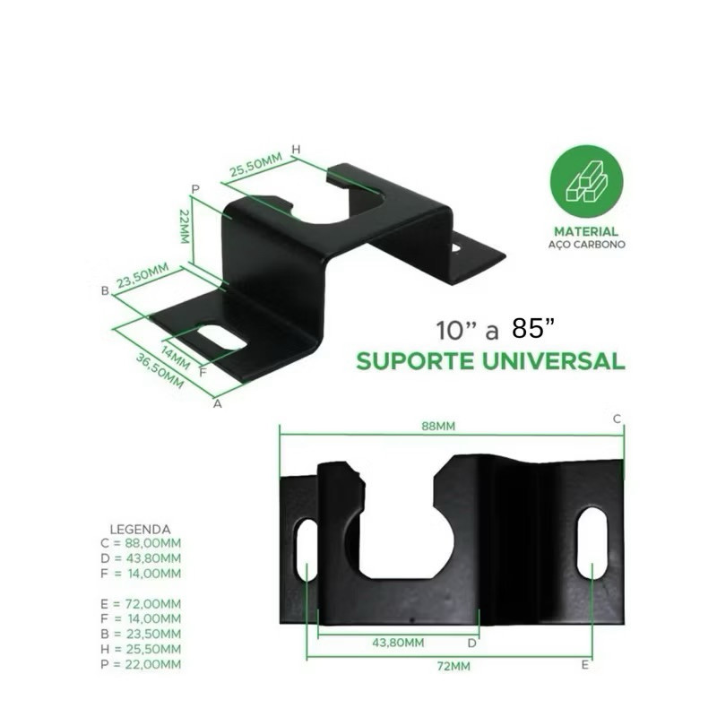 O suporte UNI80B da ELG é a solução definitiva para quem busca discrição, resistência e facilidade de instalação. Por ser universal, ele é compatível com praticamente todos os modelos de TVs LED, LCD, Plasma e 4K do mercado, suportando desde telas pequenas de 10 polegadas até gigantes de 100 polegadas. Por que o ELG UNI80B é o favorito do mercado? Capacidade de Carga Imbatível: Suporta até 100kg com total segurança. Instalação "Easy Click": Sistema de encaixe rápido que facilita a montagem e desmontagem. Design Discreto: Fica a apenas 3cm da parede, dando aquele acabamento de "quadro" para sua TV. Material Premium: Fabricado em aço carbono com tratamento anticorrosivo (não enferruja). Kit Completo: Já acompanha parafusos, buchas e gabarito para você instalar sem dor de cabeça. Especificações Técnicas: Marca: ELG Modelo: UNI80B Compatibilidade: TVs de 10" a 100" polegadas. Padrão VESA: Universal (atende a todas as medidas). Carga Máxima: 100 kg. Distância da Parede: 3 cm. Conteúdo da Embalagem: 01 Par de suportes. Kit de parafusos e buchas para diversas superfícies. Manual de instruções.