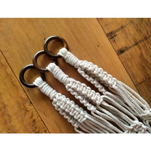Descrição Macrame Hanger Suporte Vaso Comprimento 95cm cordão algodão FEITO ARTESANALMENTE: pode haver pequenas diferentes entre um item e outro 1 unidades Material : Cordão de Algodão Cru 4mm Aproximadamente 95cm de altura contando com a Argola Argola de madeira Serve para diversos diâmetros de vasos Nas fotos colocamos diversos tamanhos de vasos para você ver como fica no mesmo macramê **Não acompanha vaso nem as flores **