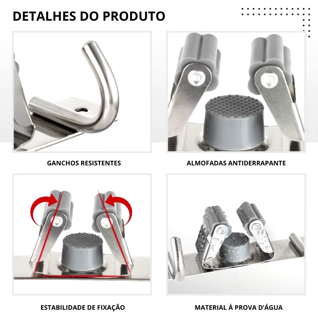 Suporte de Vassoura Organizador Com 4 Ganchos e 5 Alças Feito em Inox