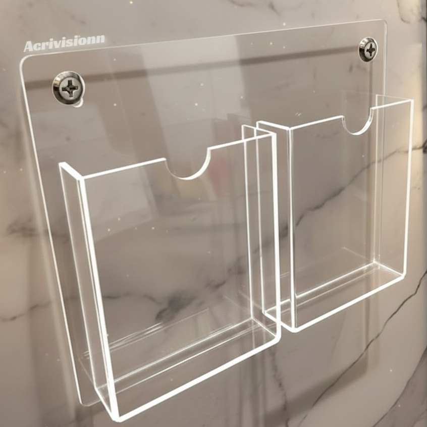 porta envelope de dízimo produzido em acrílico 2 MM Cristal transparente dimensões 27 de largura 16 cm de altura as bolsas contidas nesse produto mede 12 x 12 cm profundidade 2,5 cm produto direcionado para igrejas para portar envelope de dízimos panfletos folhetos e outros