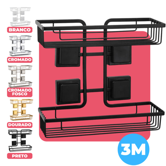 Suporte Duplo Porta Shampoo Condicionador Sabonete Parede Banheiro Fixação Fita Adesivo 3M Arthi