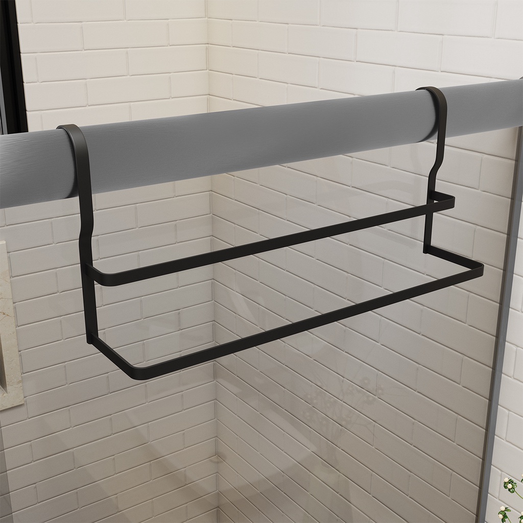 Suporte Duplo Porta Toalhas Toalheiro Box Preto Fosco 60cm