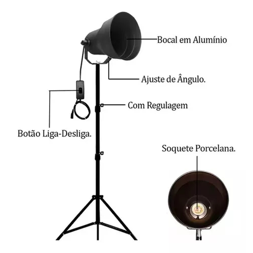 LANÇAMENTO • Suporte para lâmpada infravermelha com tripé é indicado para uso profissional ou particular em tratamentos com luz infravermelha. • O suporte é com regulagem de Altura, podendo ser utilizado em seu tamanho mínimo de 0,80 cm e também em sua altura máxima de 2 metros. (única do mercado com todo esse ajuste) - Fabricado no Brasil, garantia do fabricante! - OBS: Não acompanha lâmpada. Ficha técnica: Produto: Suporte de Infravermelho Portátil Para Lâmpada Fisioterapia Altura mínima: 80 cm. Altura máxima: 2 m. Peso: 2,25 kg Precauções: - Após usar desligar da energia elétrica - Nunca lavar. Para lavar usar pano seco e álcool, com o produto desligado da tomada - Se possível manter a lâmpada sempre rosqueada ao suporta evitando o tira/põe. - O suporte para infravermelho funciona com lâmpada de até 250W. Modo de usar: - Retirar o suporte da embalagem plástica